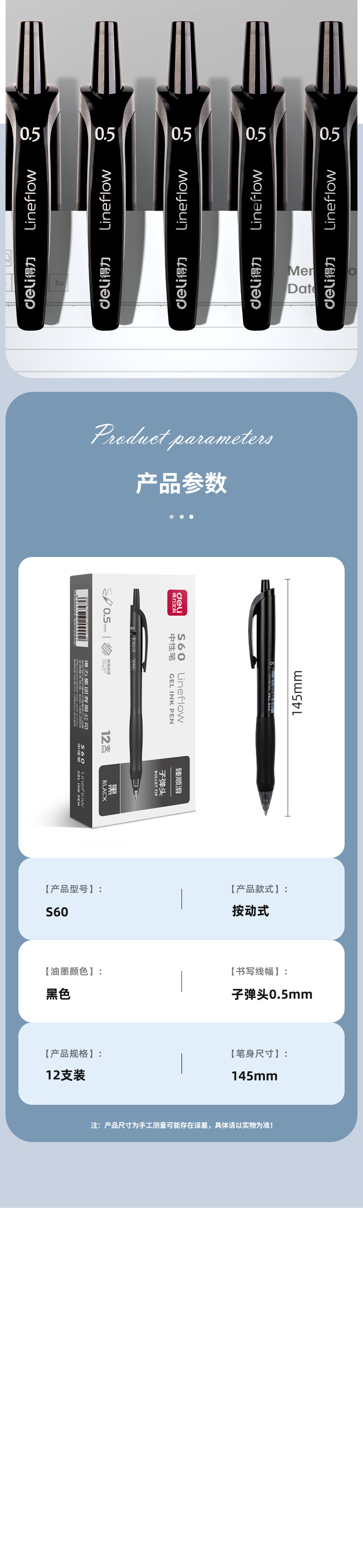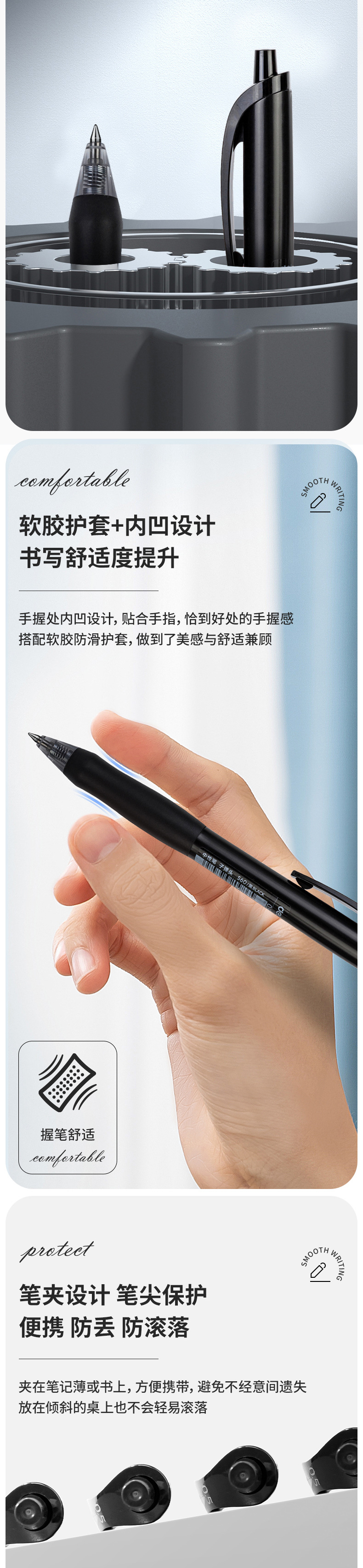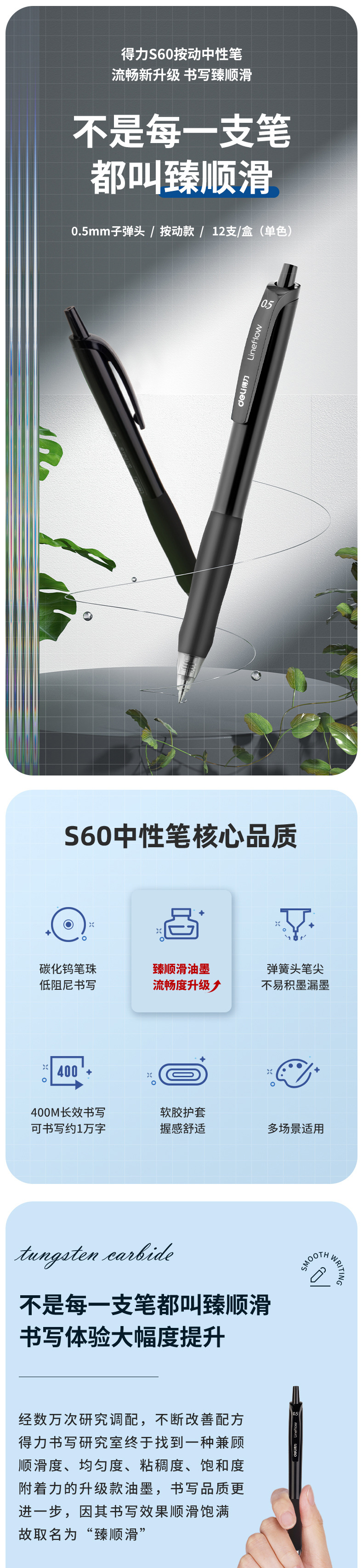 Lápiz neutro de 0,5 mm con cabeza de bala, lápiz de escritorio para estudiantes, lápiz de escritorio, lápiz de agua, funda de pegamento suave S60