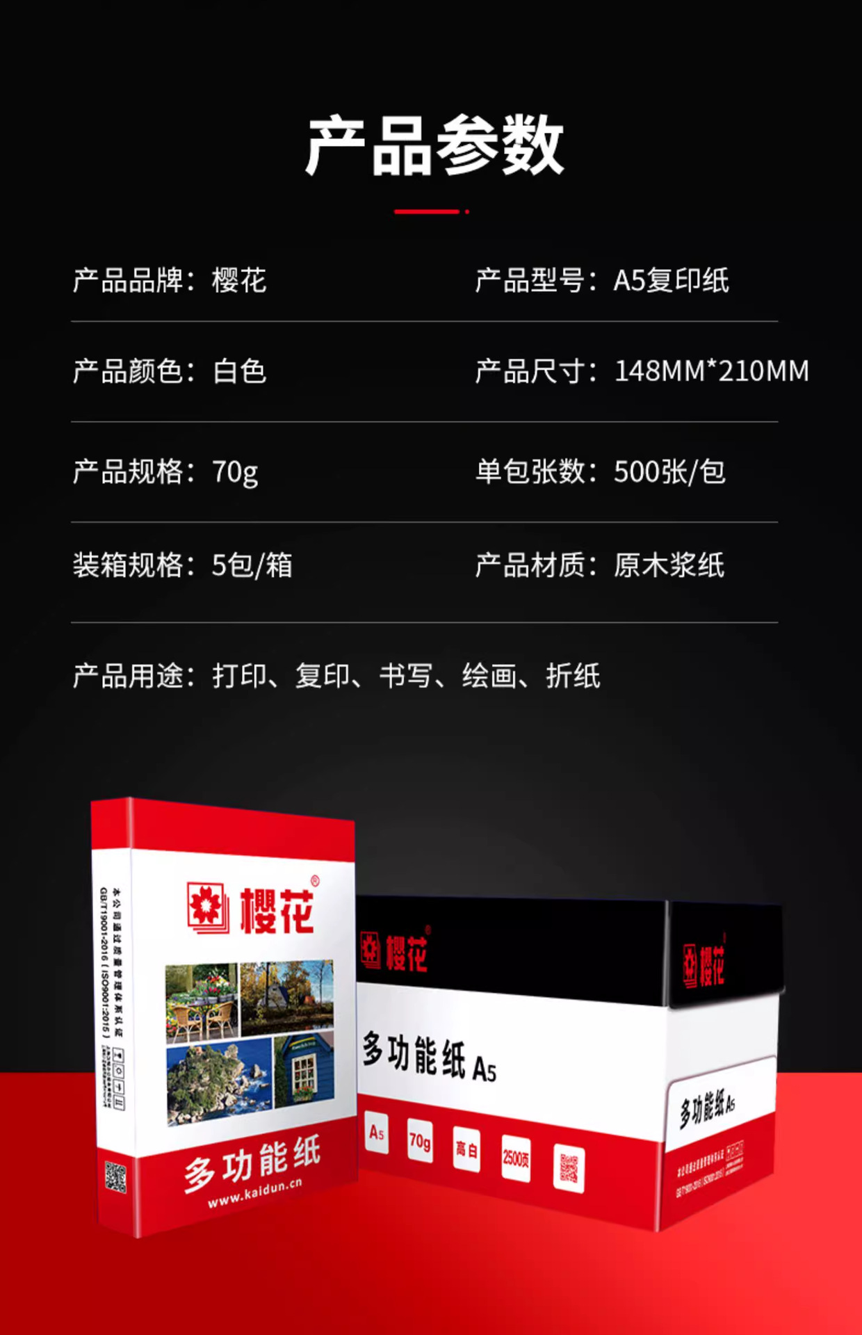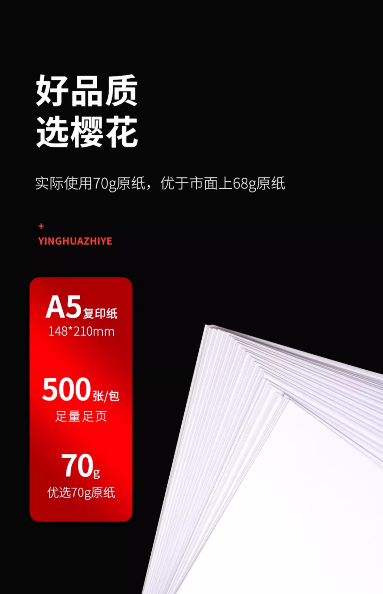 Sakura A5 papel de impresión de copias 70g 1000 hojas / grupo 2 paquetes a5 papel de dibujo de papel de borrador de estudiantes a5 papel blanco de copia
