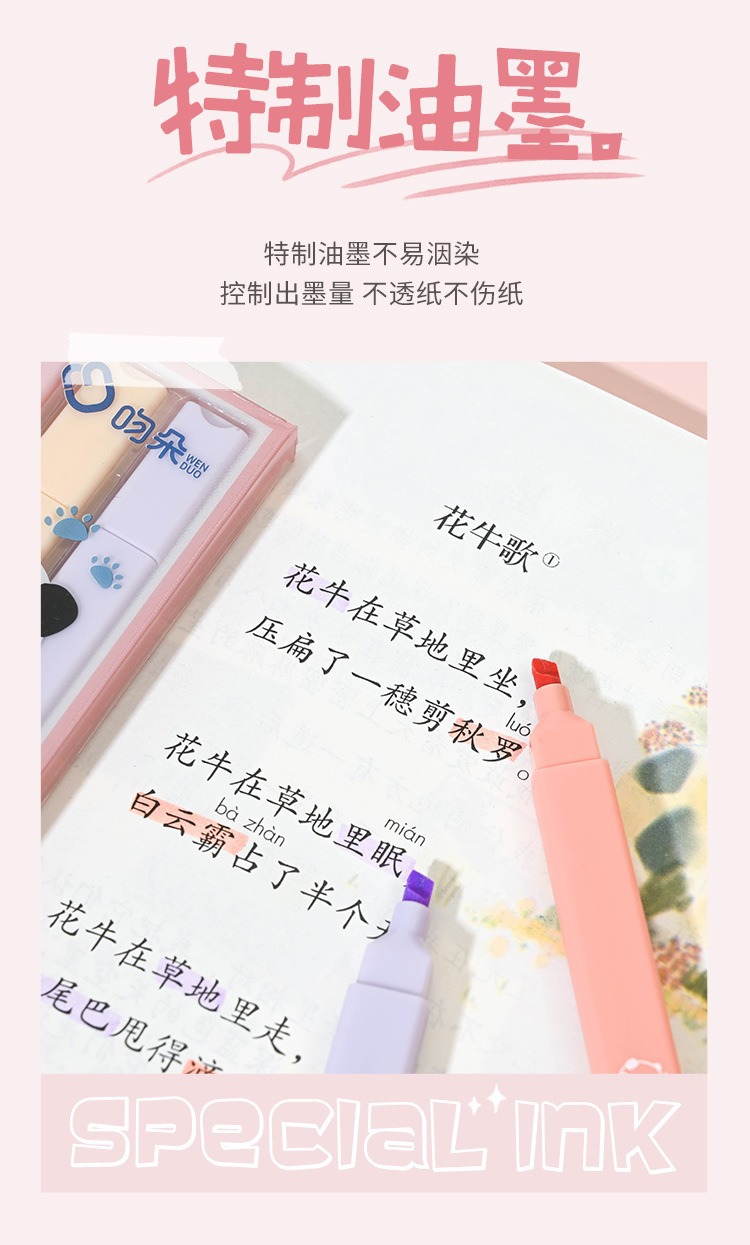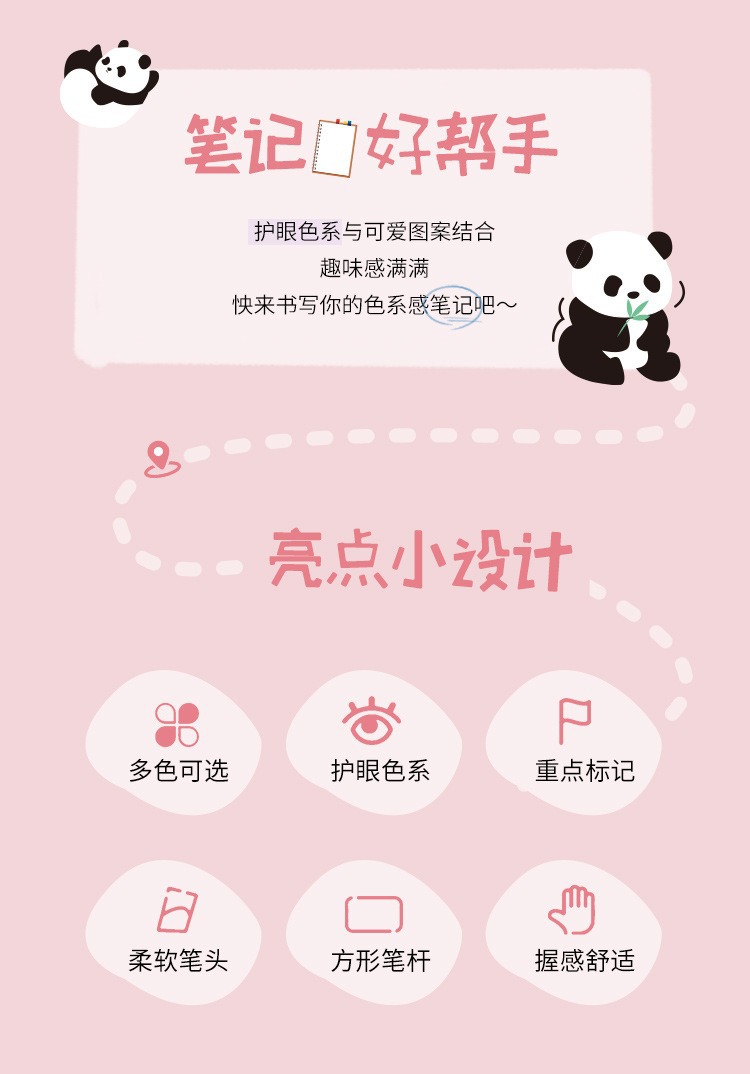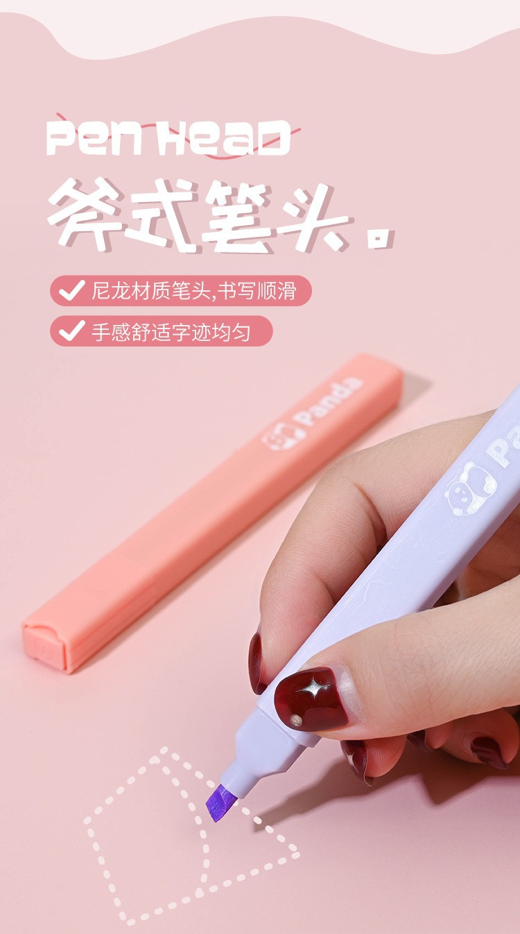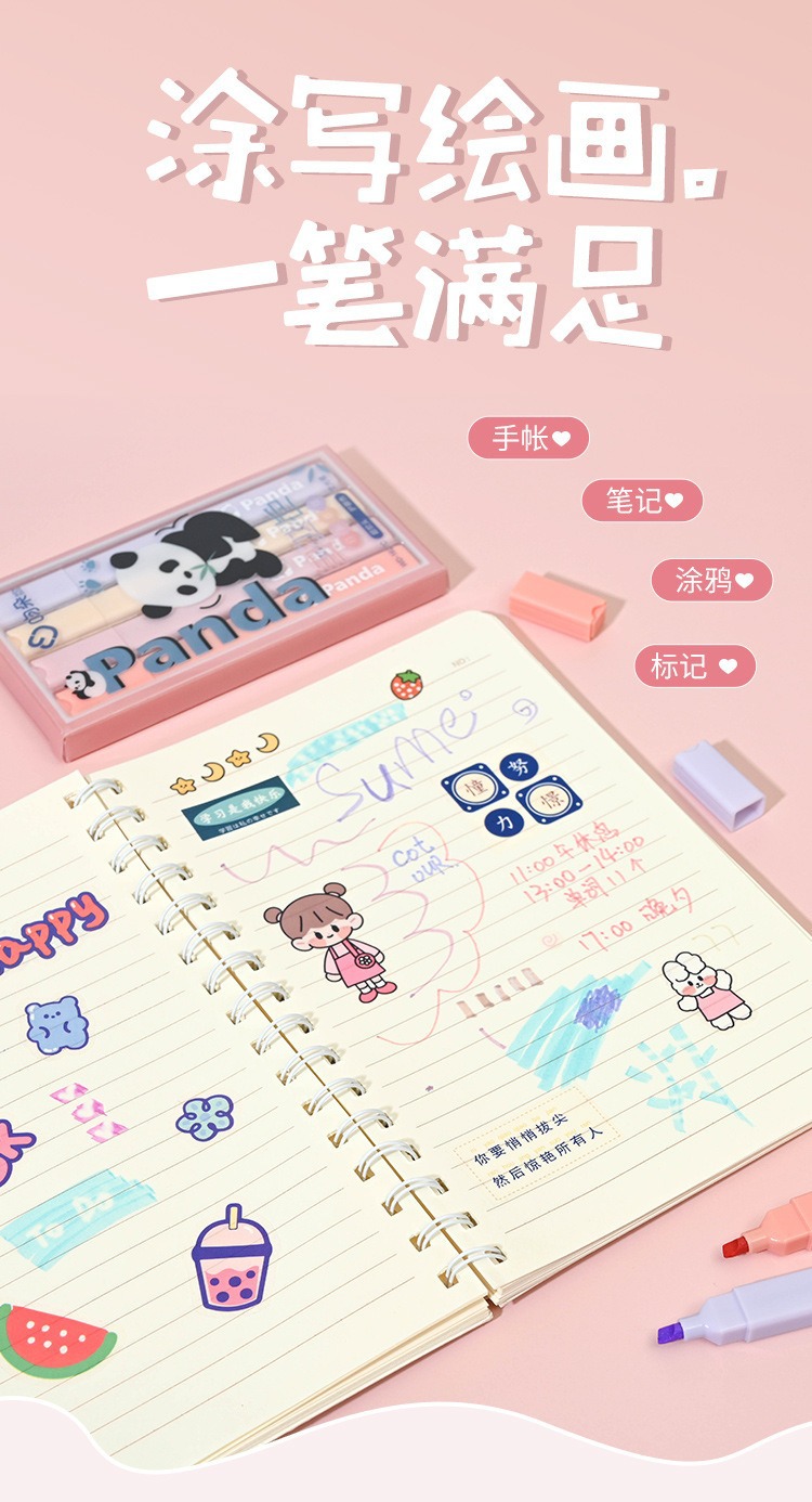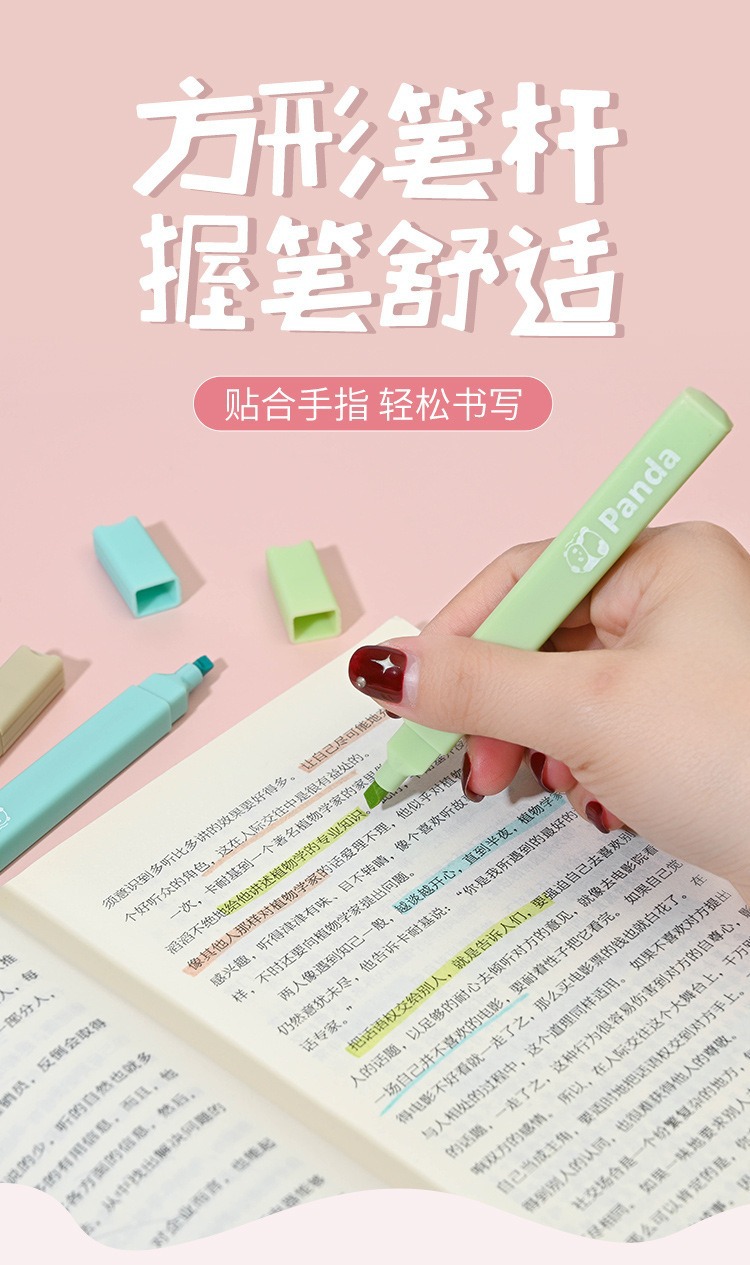 Cute Panda Soft Head Protector de ojos Resaltador de color Pen clave Pen Bolígrafo de color de la cuenta de mano de la escuela primaria Caja al por mayor