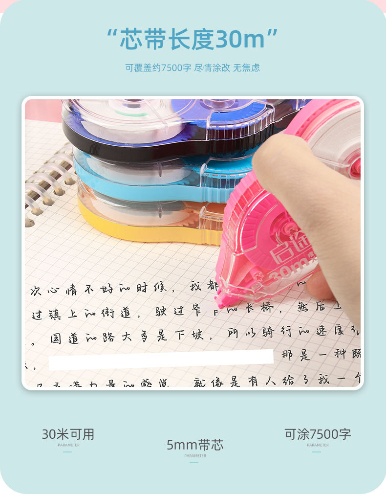Cinta de corrección clásica de oficina de gran capacidad 30 m cinta de corrección junior y senior estudiante de secundaria cinta de corrección papelería creativa al por mayor