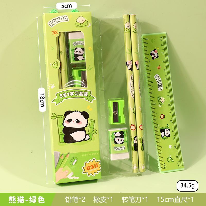 | El juego de cinco piezas incluye | Regla, lápiz, borrador, sacapuntas |