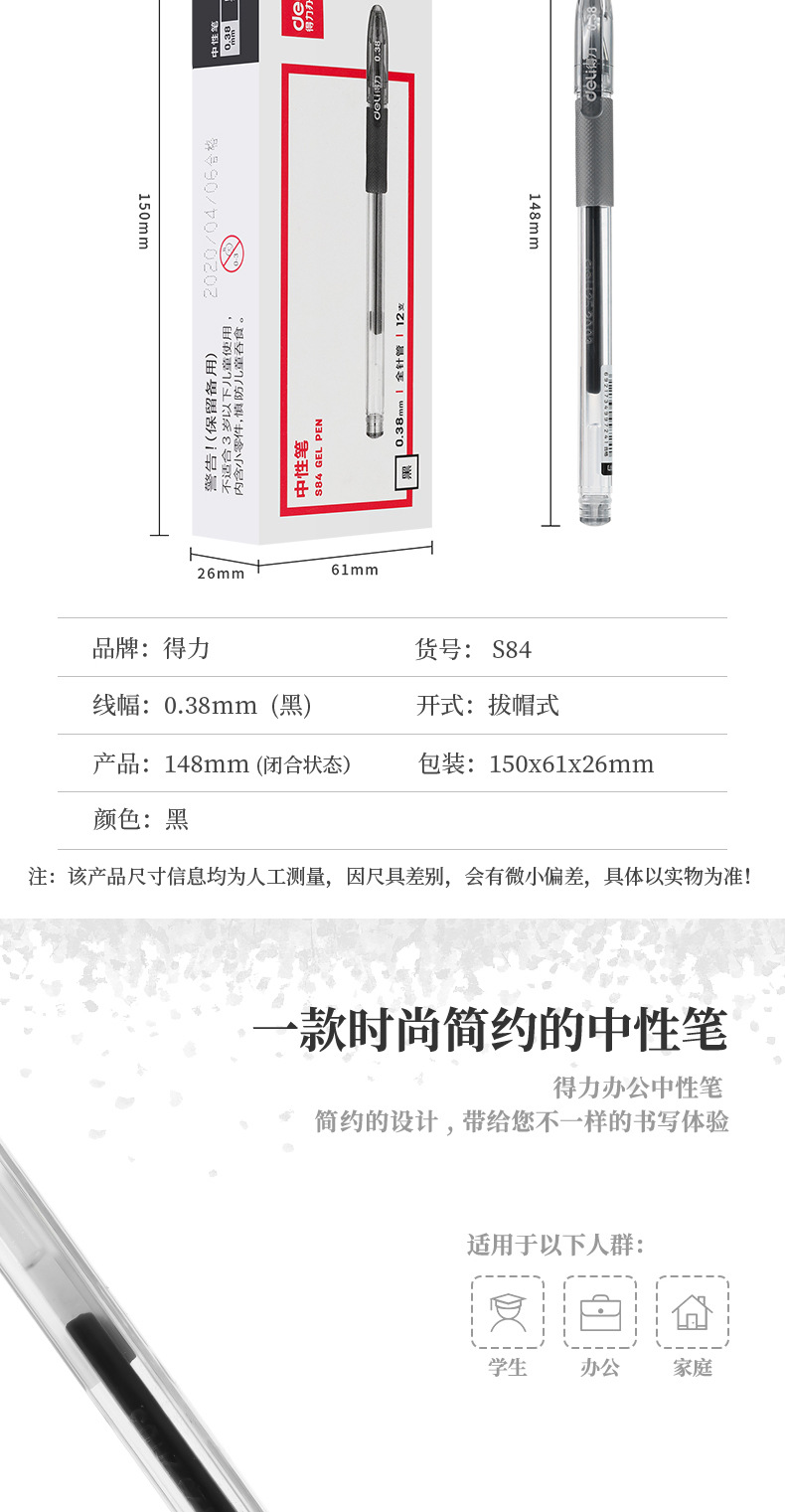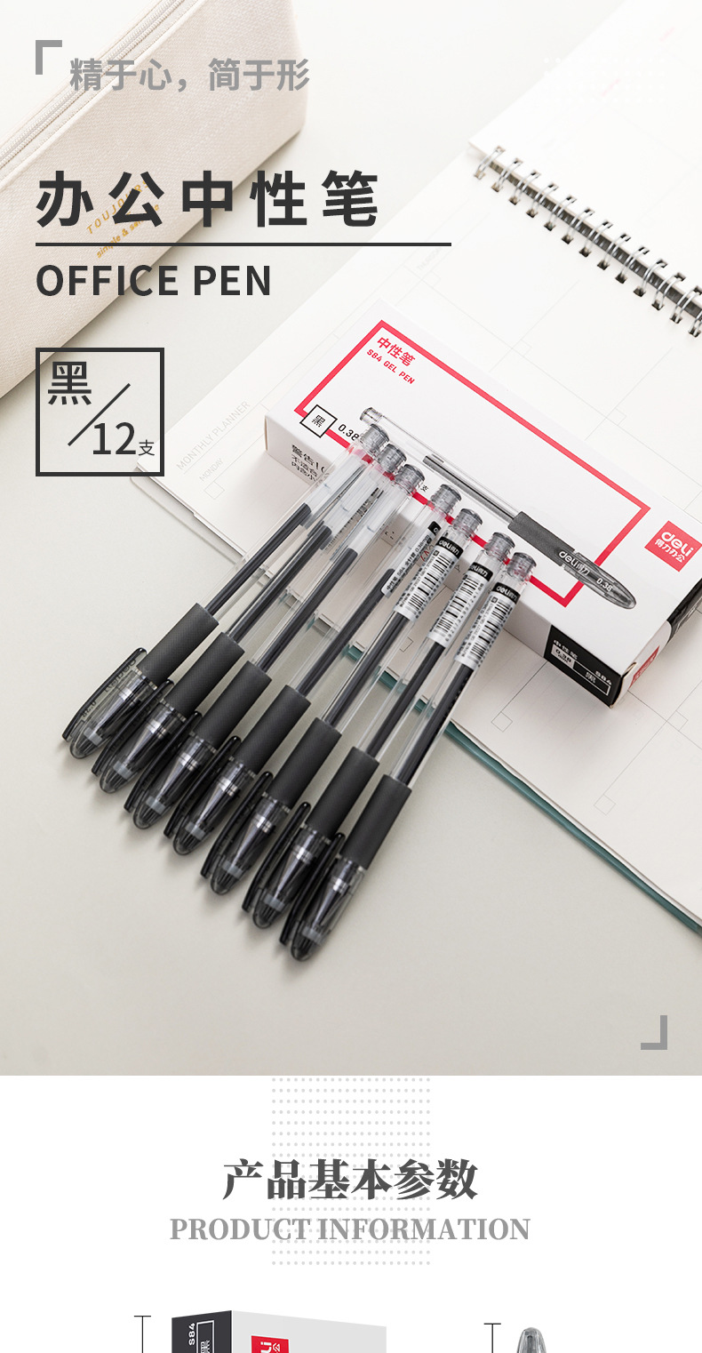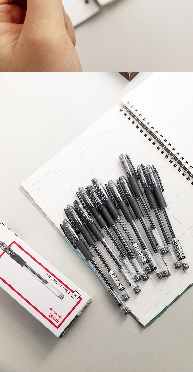 Bolígrafo neutro de 0.38mm para finanzas negro de aguja completa bolígrafo de sombrero de oficina de negocios bolígrafo S84