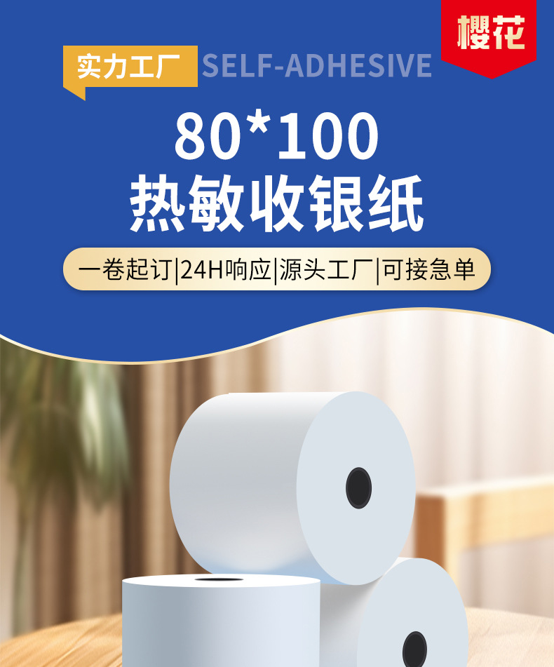 Flor de cerezo caja registradora térmica de Papel de recibo de papel pequeño tubo núcleo 80*100 suministro directo de fábrica