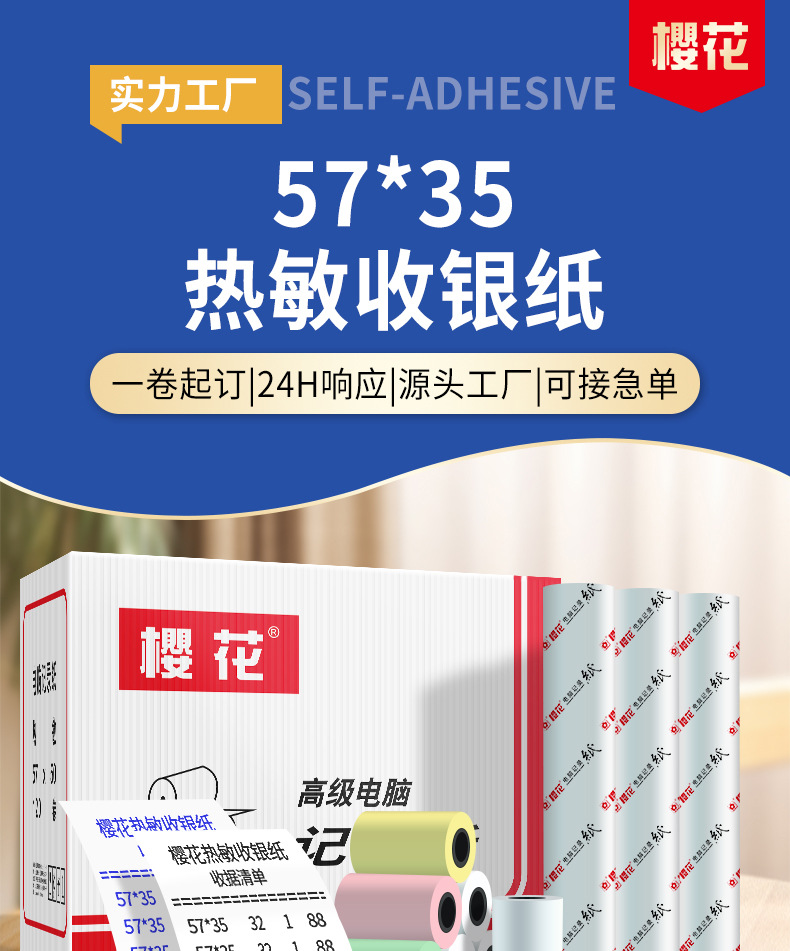 Sakura papel de caja registradora térmica 57*35 papel de impresión de comida para llevar color papel de recibo térmico papel de caja registradora
