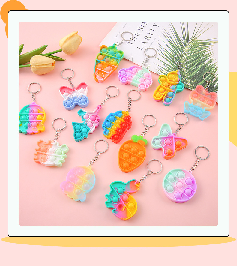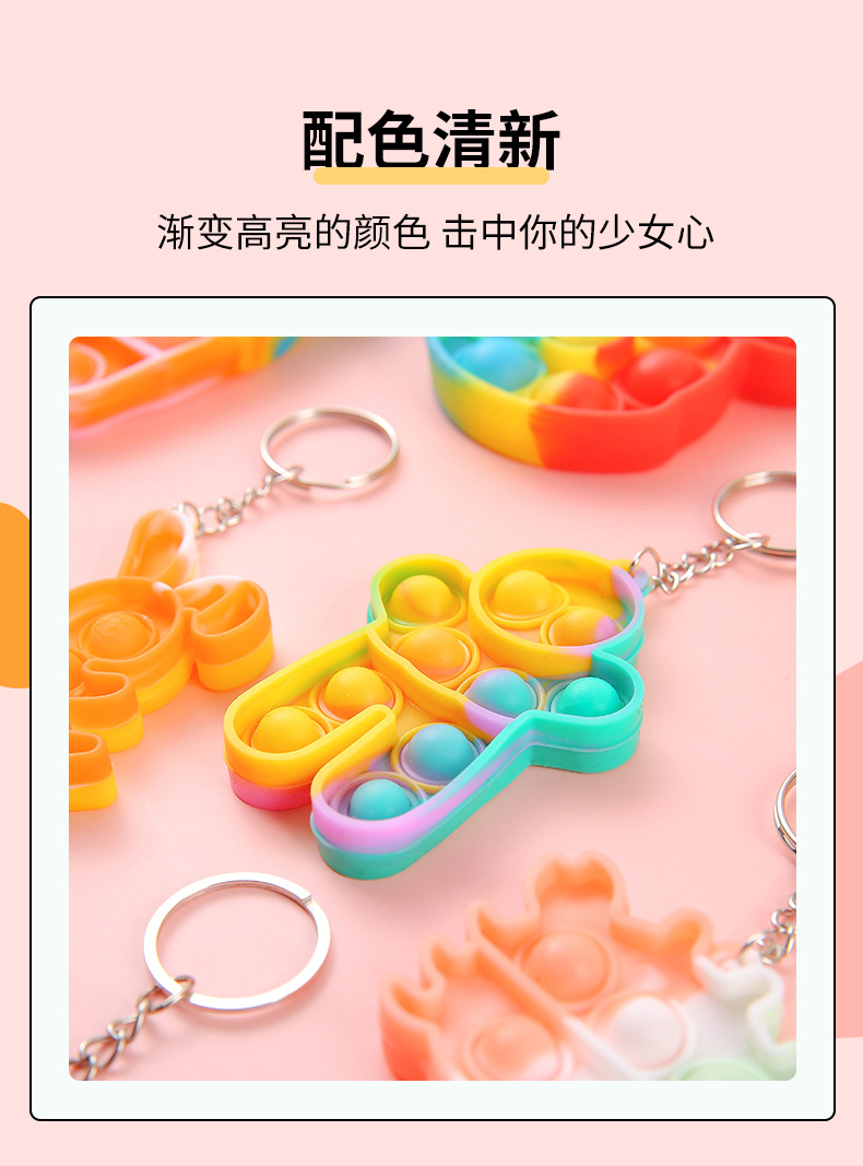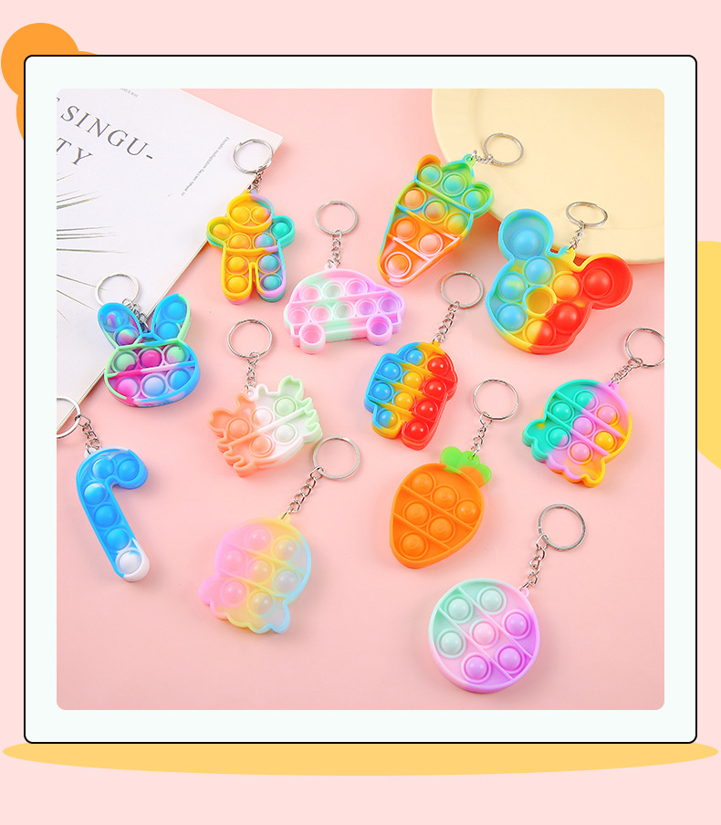 Creativo dedo presión burbuja Le desprimir juguetes para niños pequeño arco iris llavero colgante pequeño regalo para jardín de infantes