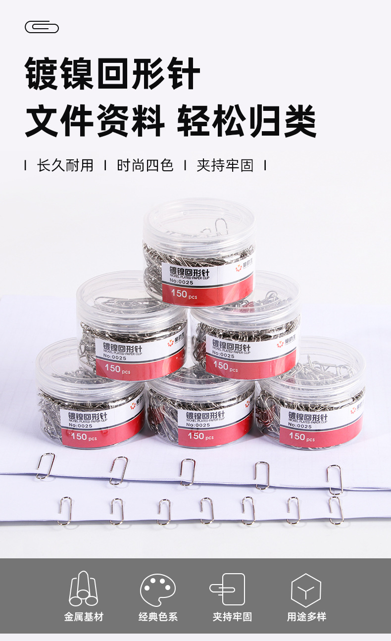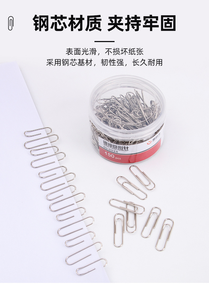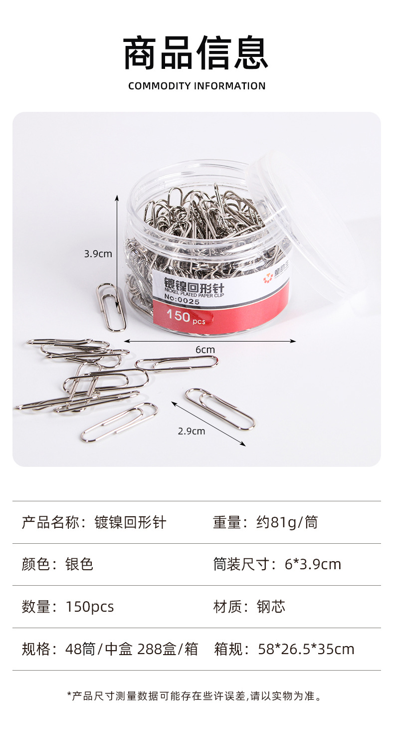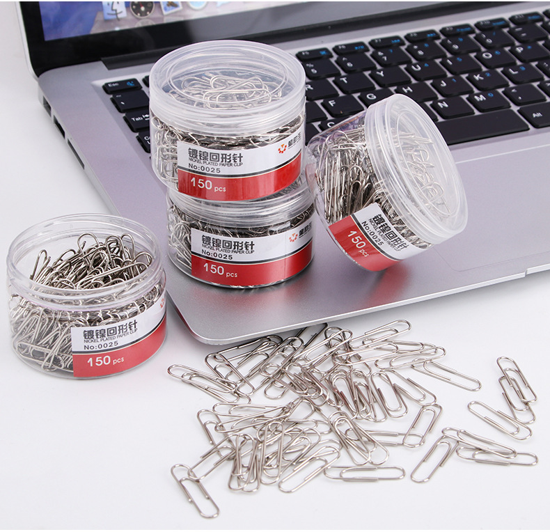 Creativo níquel chapado clips 150 cartuchos de 29mm para suministros de oficina pequeños pines níquel chapado clips al por mayor