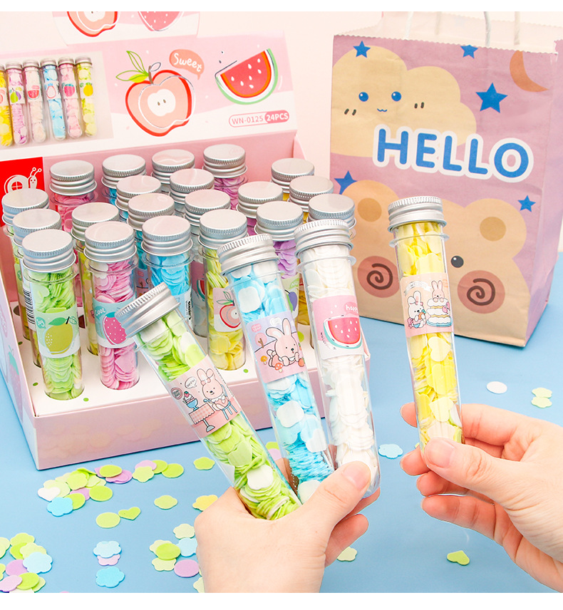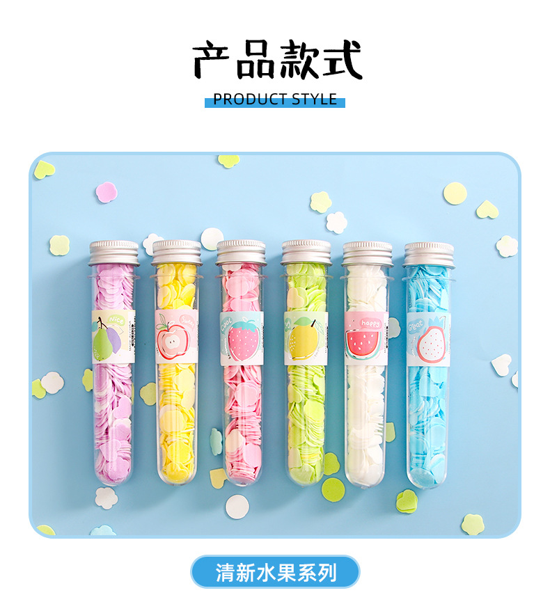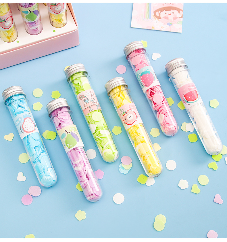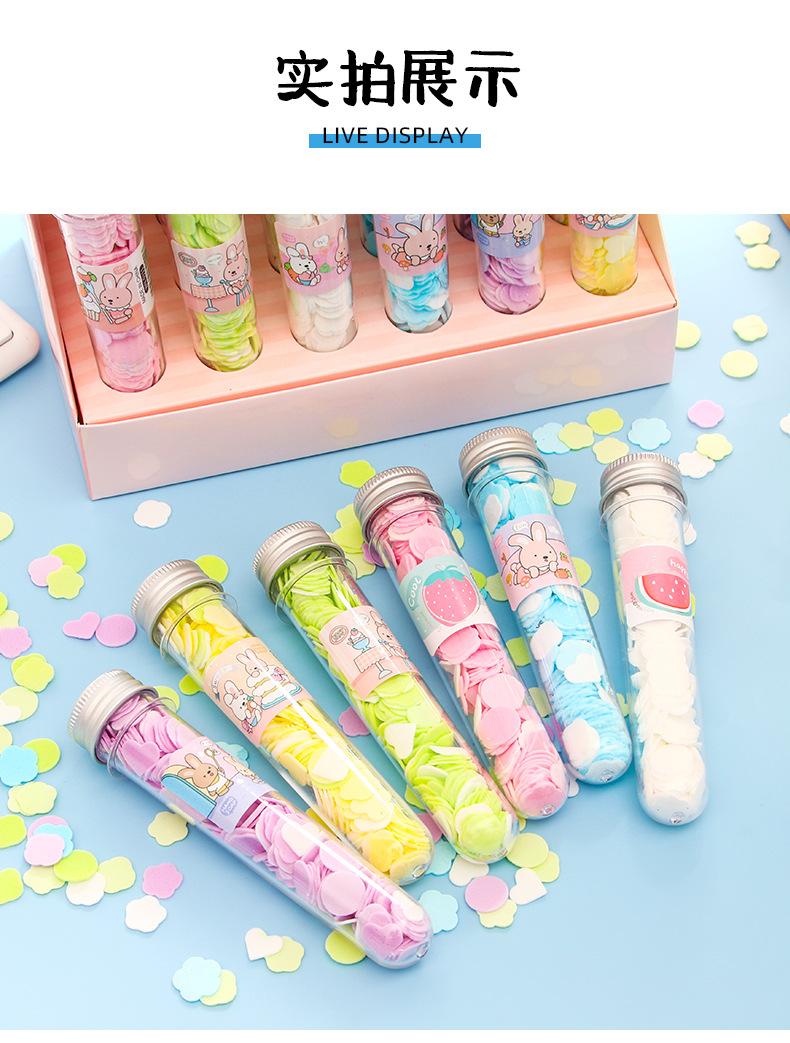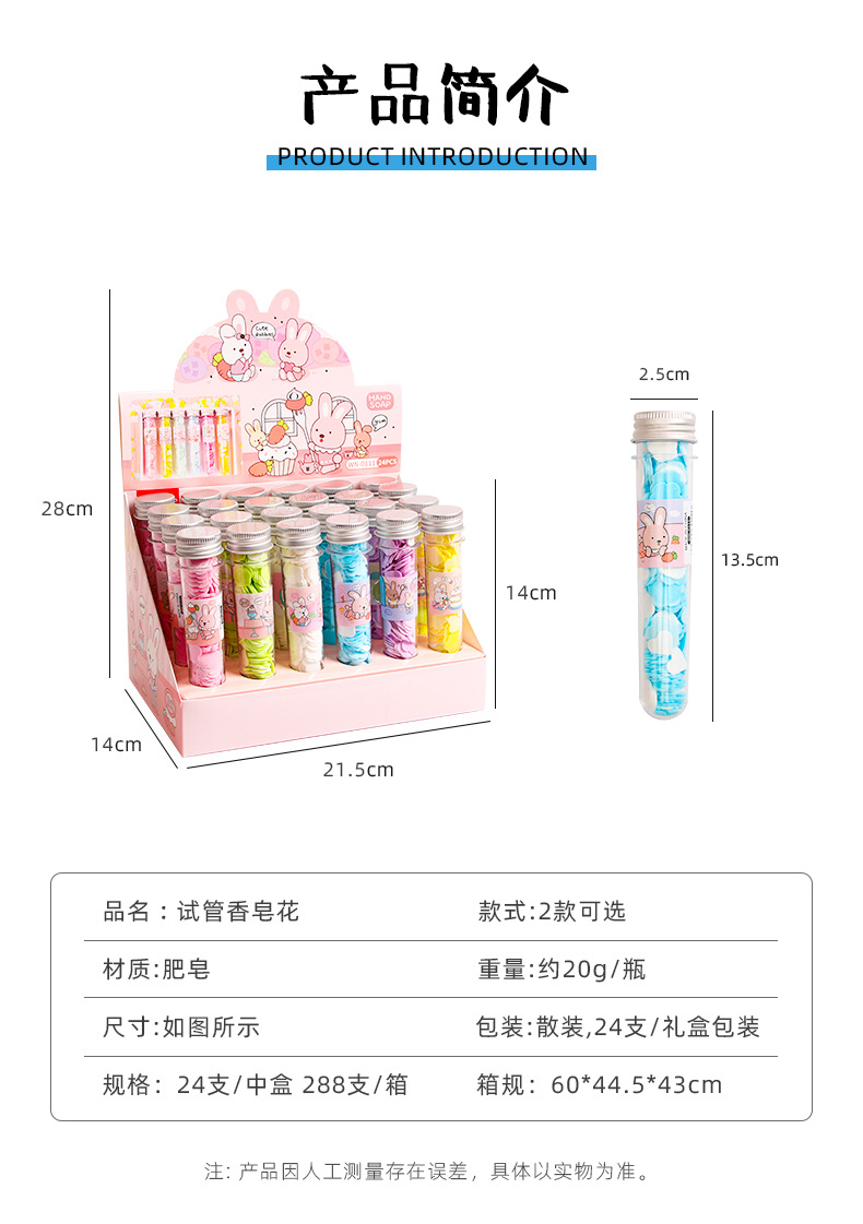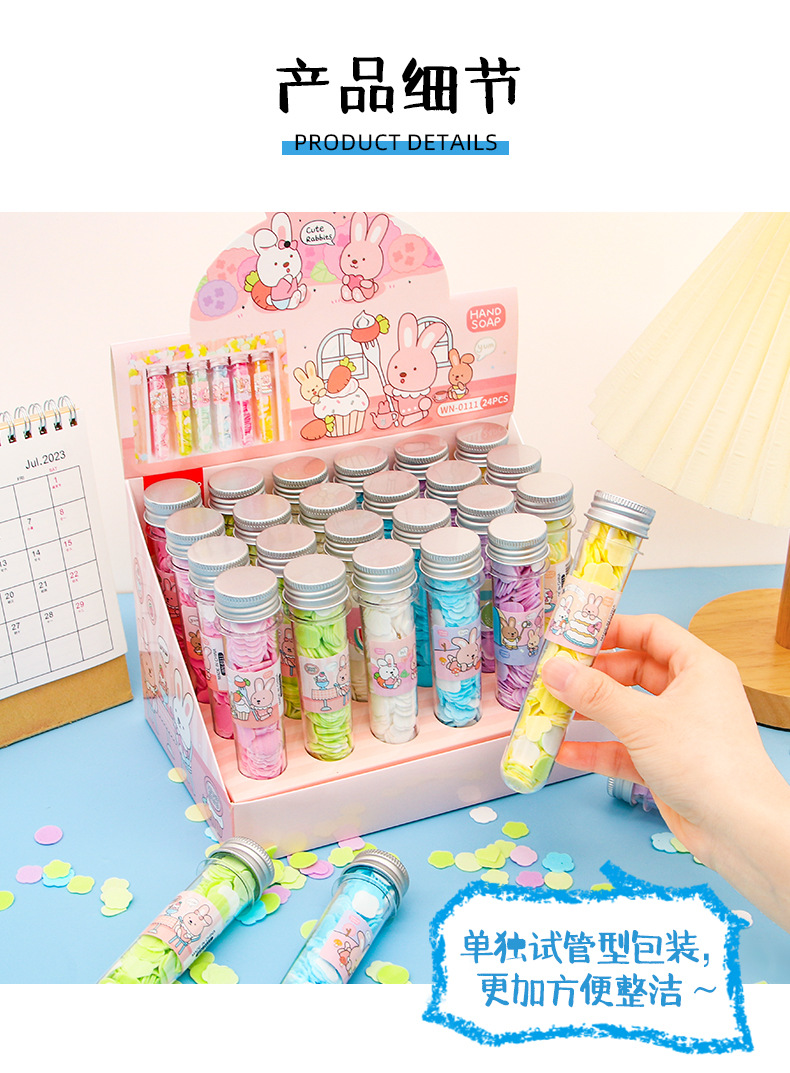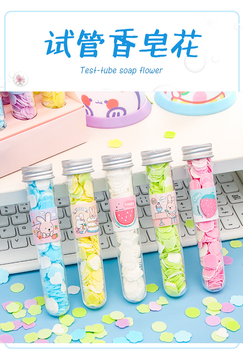 Una sola vez portátil al aire libre jabón de mano papel jabón de viaje tubo de ensayo para niños con pétalos de jabón