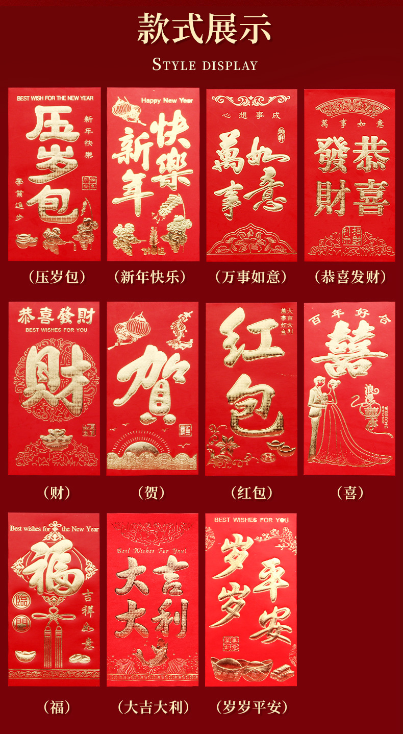 Creativo sobre rojo duro estampado de oro especial 1000 yuanes sobre rojo boda grande alienígena de Año Nuevo bolsillo de Año Nuevo venta al por mayor