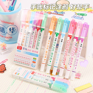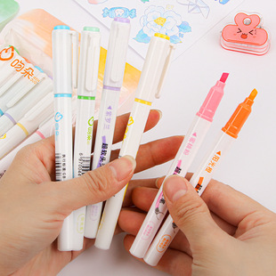 Papelería de estudiante al por mayor de doble cabeza resaltador traje creativo marcador de color estudiante multicolor diario pluma