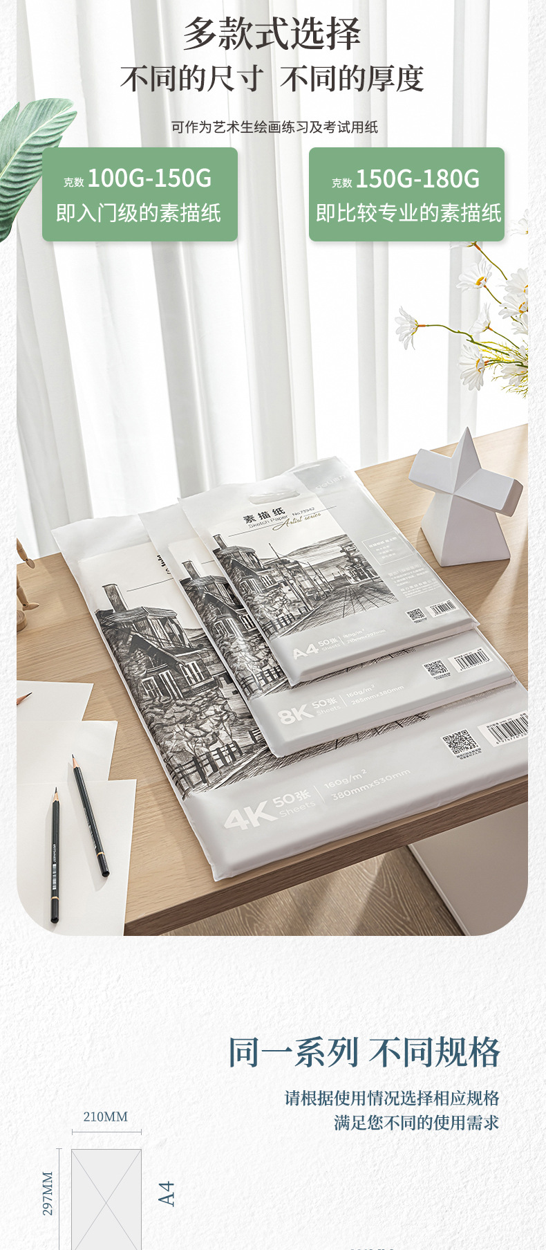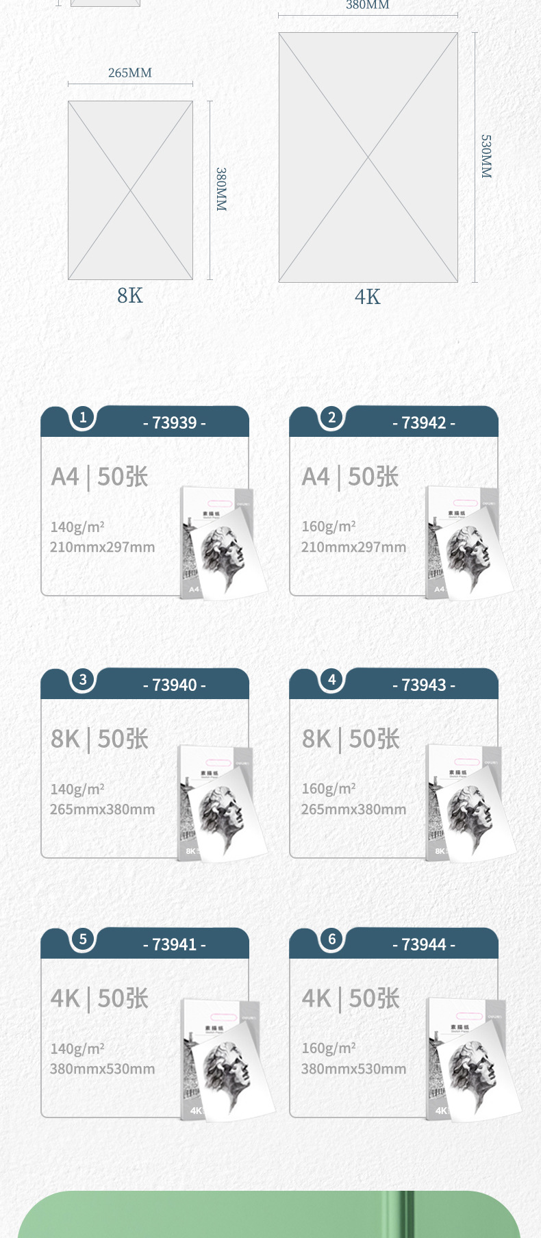 | Color | Papel de dibujo 8k - 140g - 50, papel de dibujo 8k - 160g - 50, papel de dibujo A4 - 140g - 50, papel de dibujo A4 - 160g - 50, papel de dibujo 16k - 160g - 100, papel de dibujo A3 - 160g - 100, papel de dibujo 4k - 140g - 50, papel de dibujo 4k - 160g - 50 |