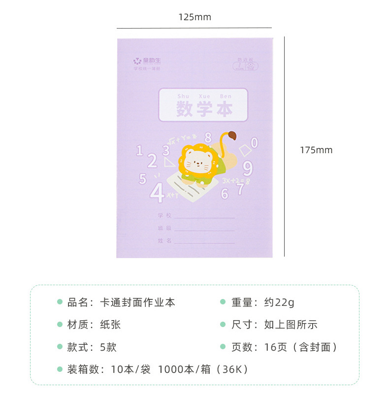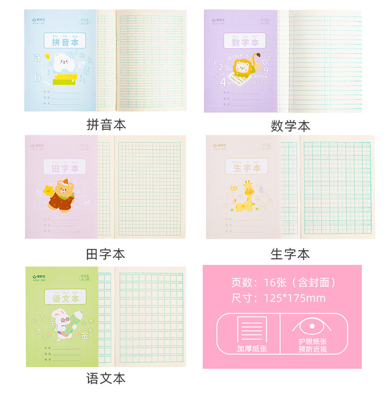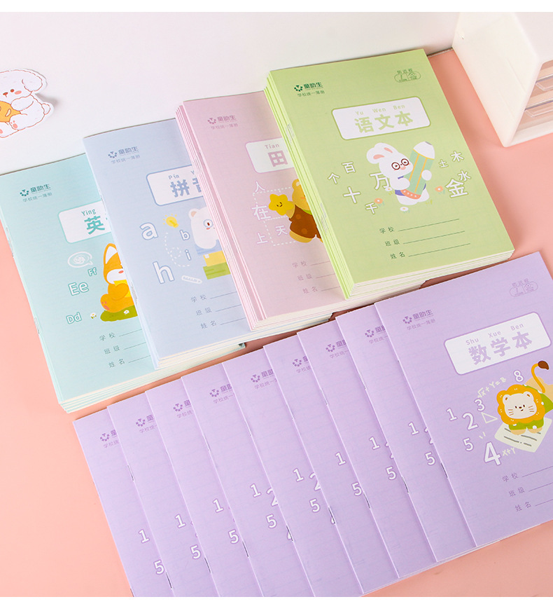 | Colores de la cubierta | Caricatura-Tianzi,Cartoon-Cartoon,Libro de matemáticas de dibujos animados,Caricatura-Pinyin,Texto de dibujos animados,Dibujos animados-Inglés,Papel kraft-Tianzi,Papel kraft,Libro de matemáticas de papel kraft,Papel kraft-Pinyin,Papel kraft-texto de idioma,Papel Kraft-Inglés |