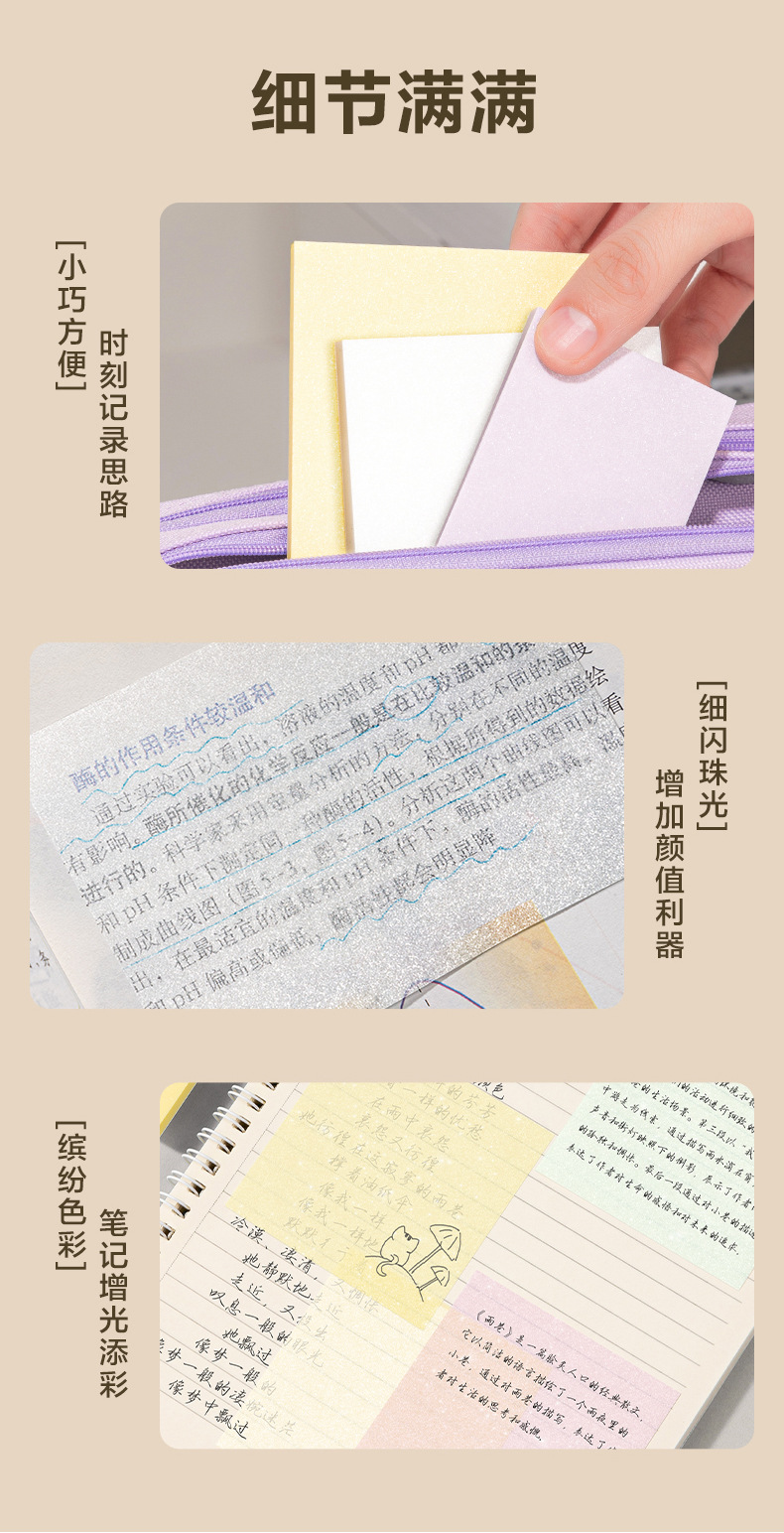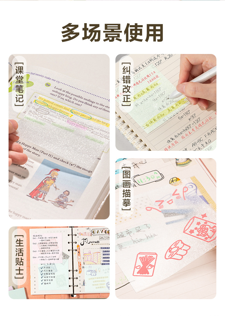 DeLi Pearl Transparent Postcard Notes Adhesivo Seco rápido Postcard Examen de posgrado Revisión de notas de estudiantes