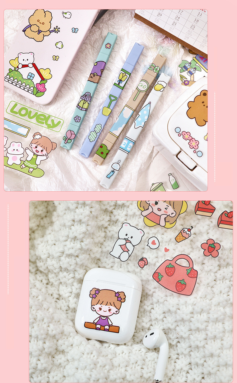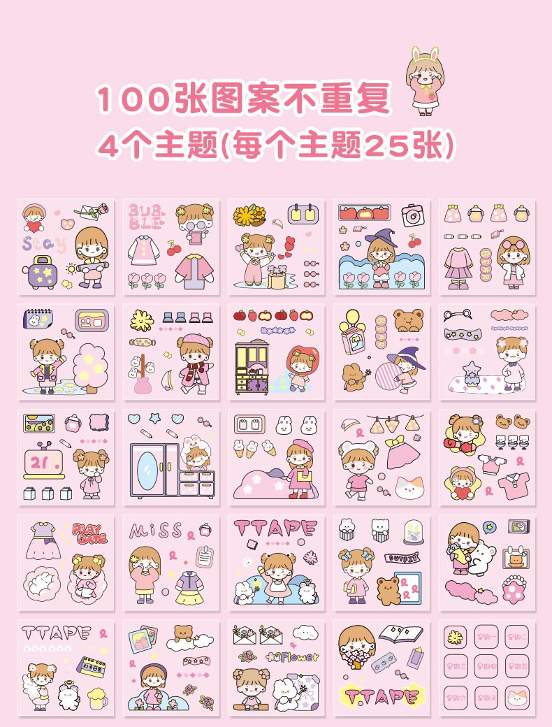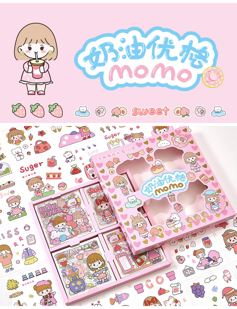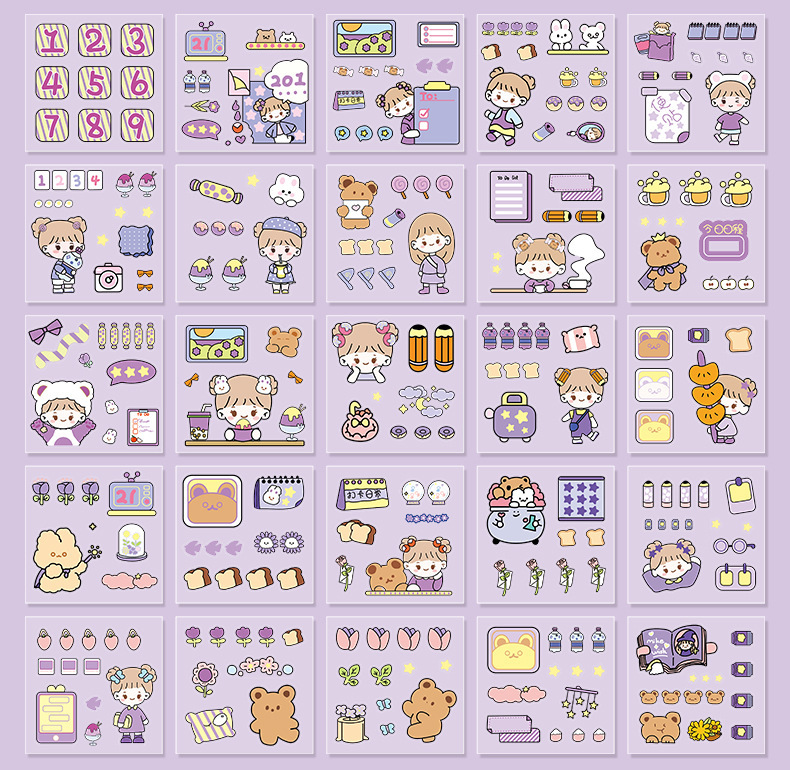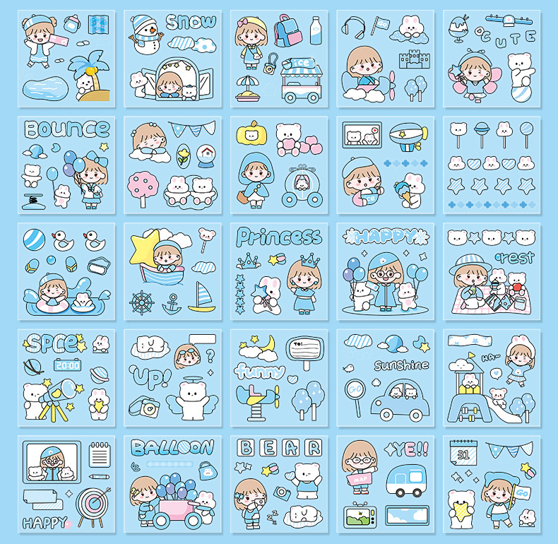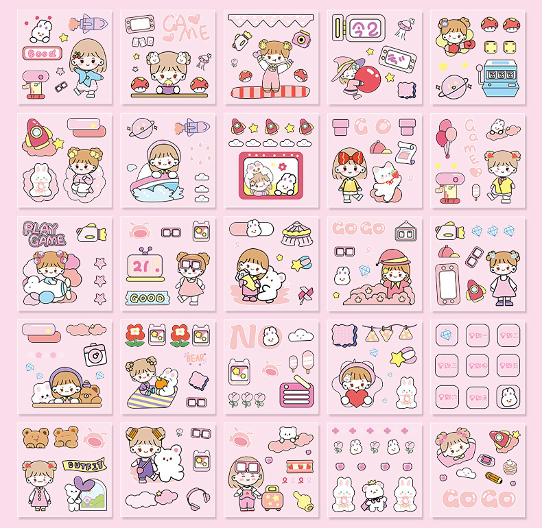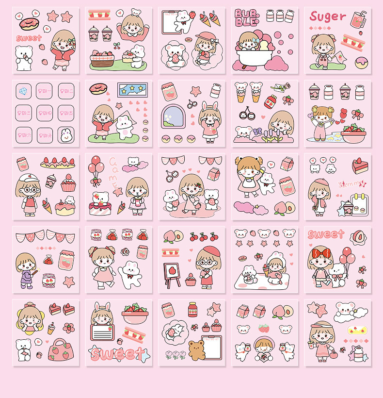100 piezas de mano cuenta Material pegatinas decorativas Cuenta de mano pegatinas traje de dibujos animados linda chica corazón DIY pegatinas decorativas