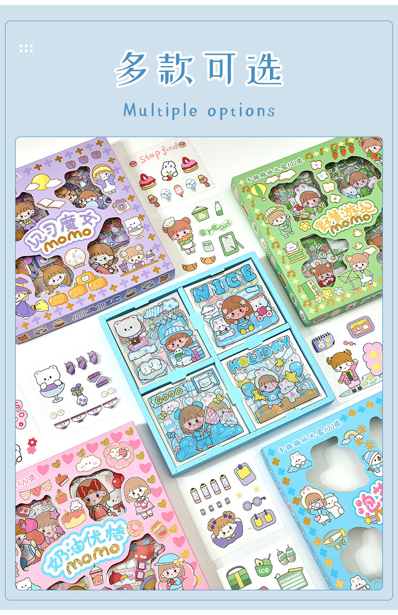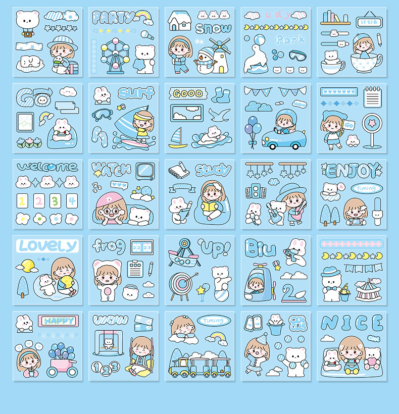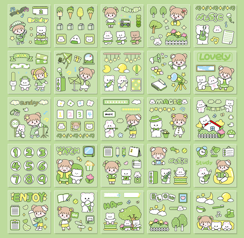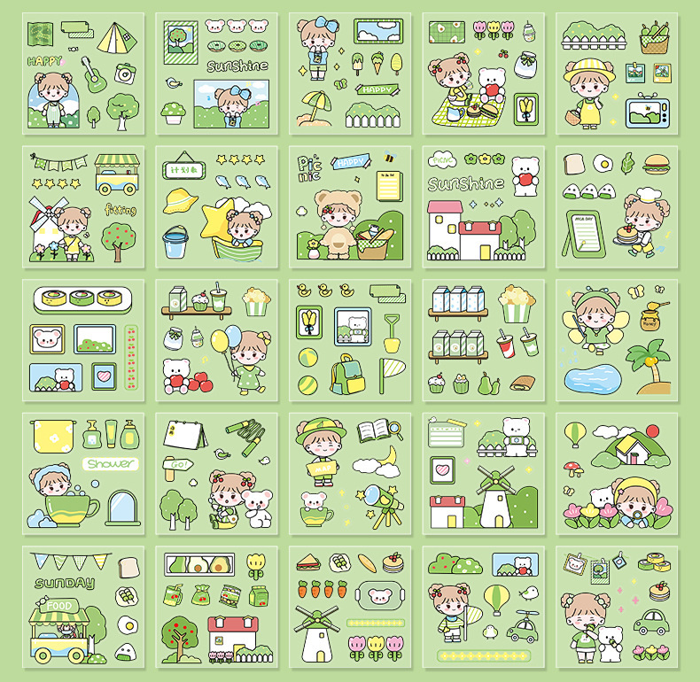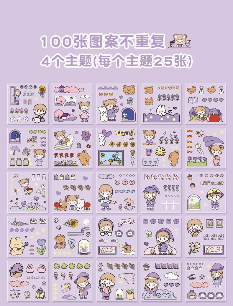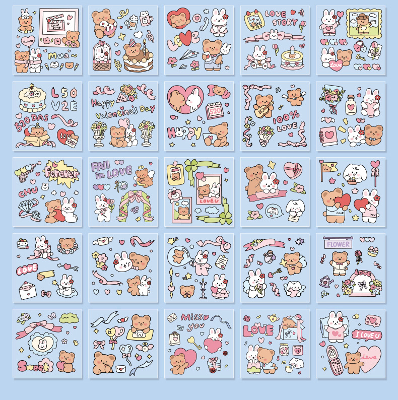 100 piezas de mano cuenta Material pegatinas decorativas Cuenta de mano pegatinas traje de dibujos animados linda chica corazón DIY pegatinas decorativas