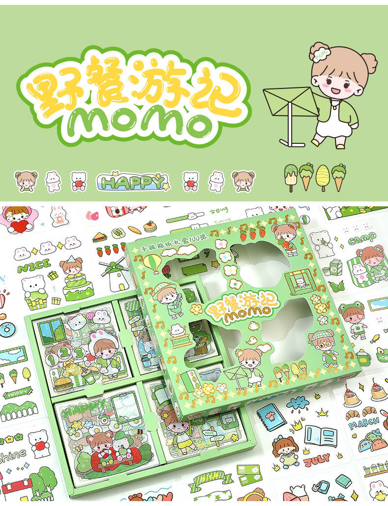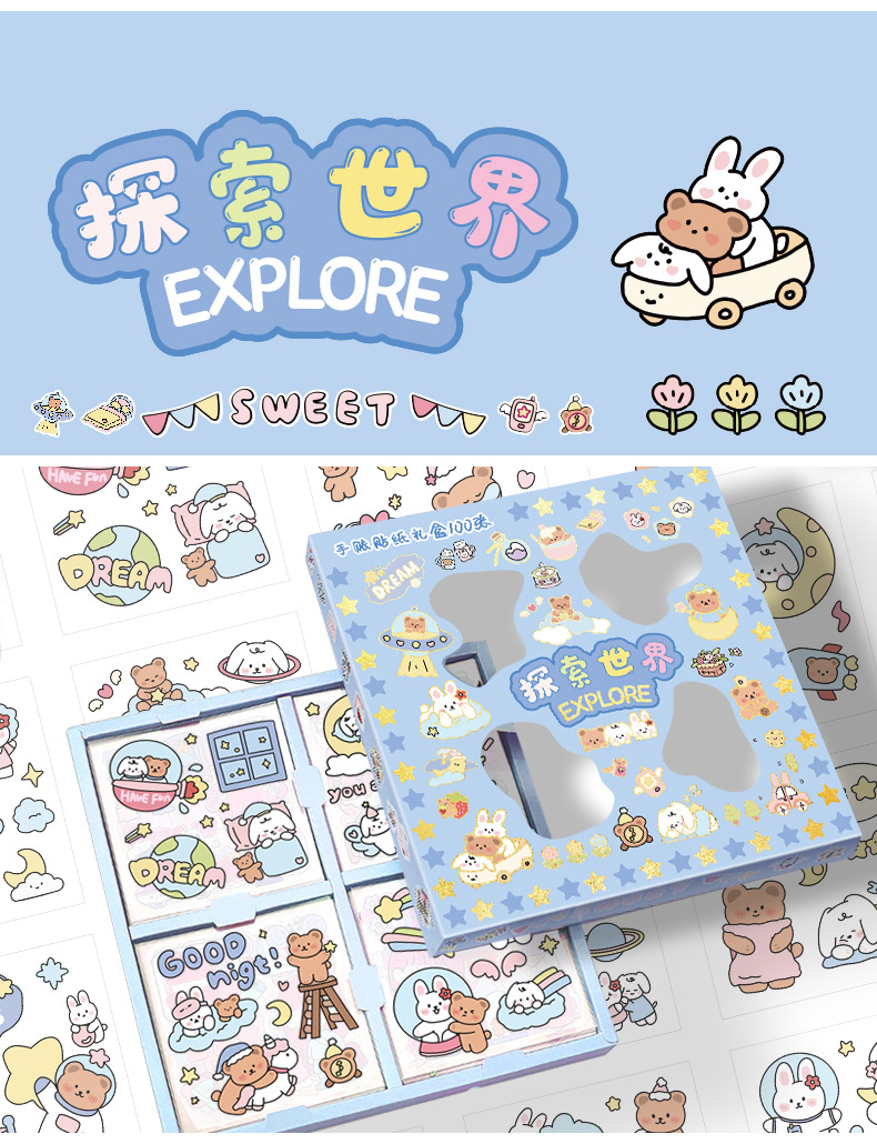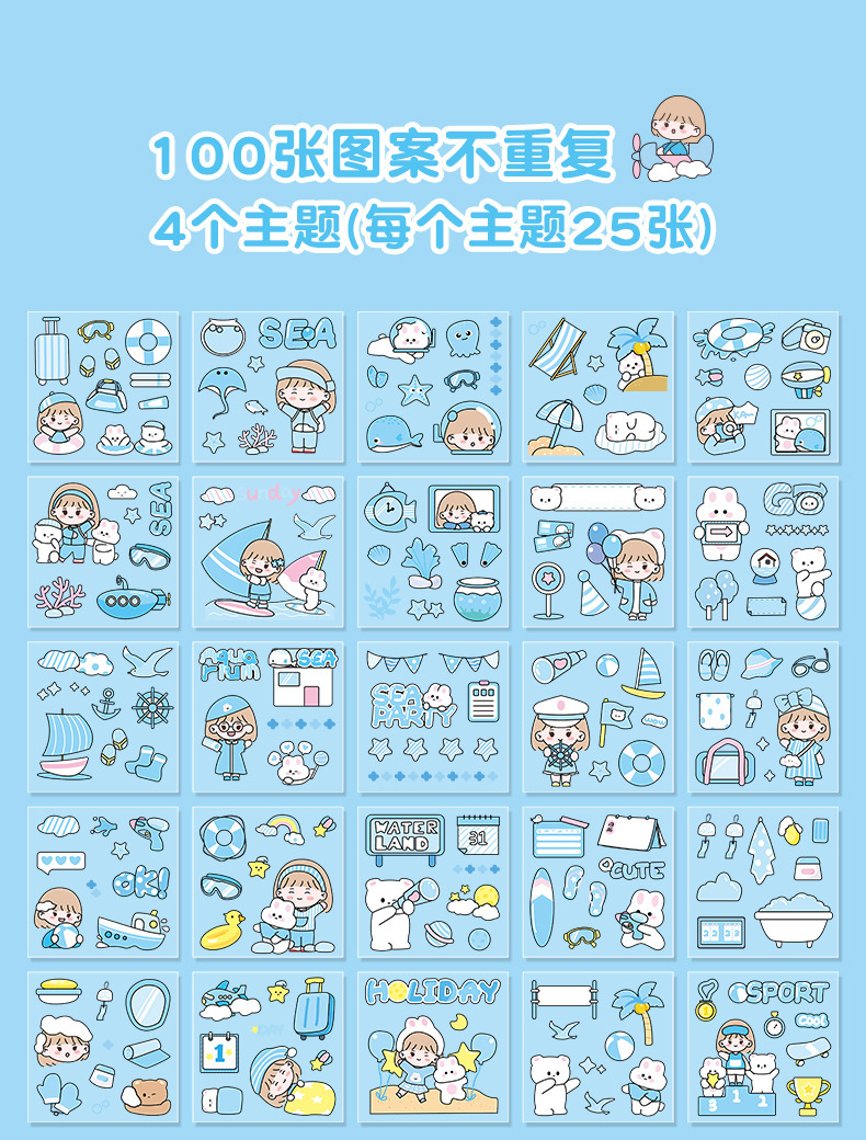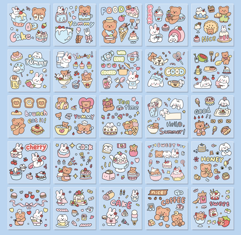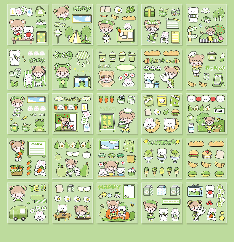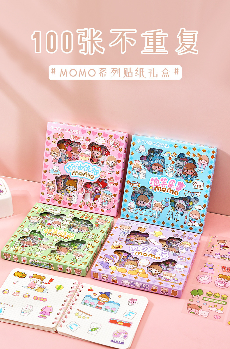100 piezas de mano cuenta Material pegatinas decorativas Cuenta de mano pegatinas traje de dibujos animados linda chica corazón DIY pegatinas decorativas