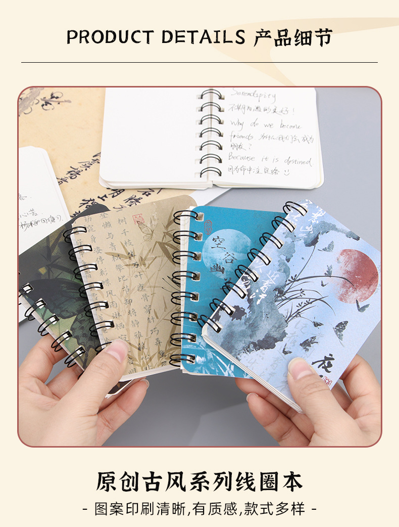 Nuevo estilo antiguo A7 bobina lateral de los estudiantes palabras en blanco cuaderno de bolsillo mini cuaderno al por mayor