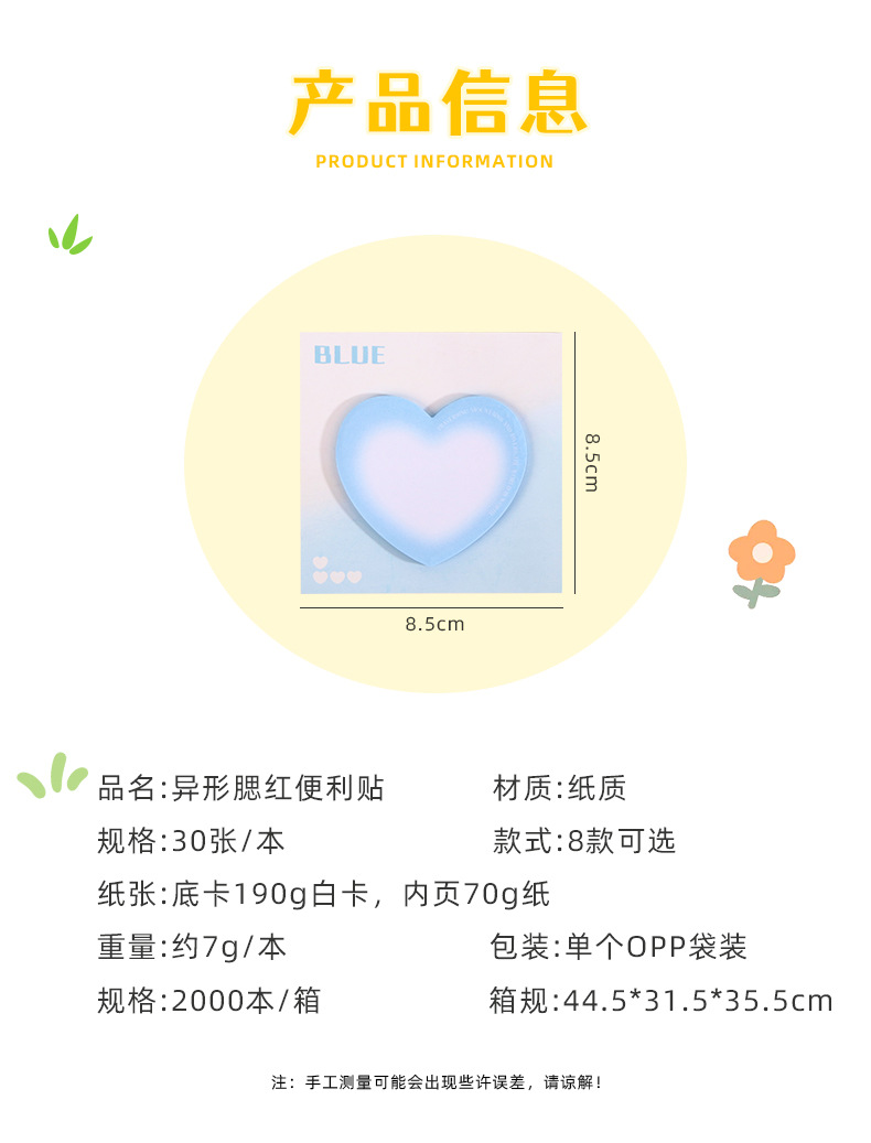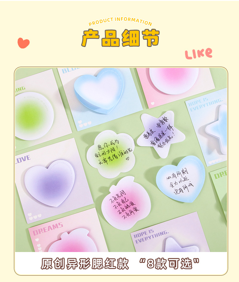 Pegatinas adhesivas de forma especial de color personalizadas de estilo ins, notas adhesivas de mensajes de estudiantes de sentido avanzado, se pueden pegar notas adhesivas desgarradas a mano