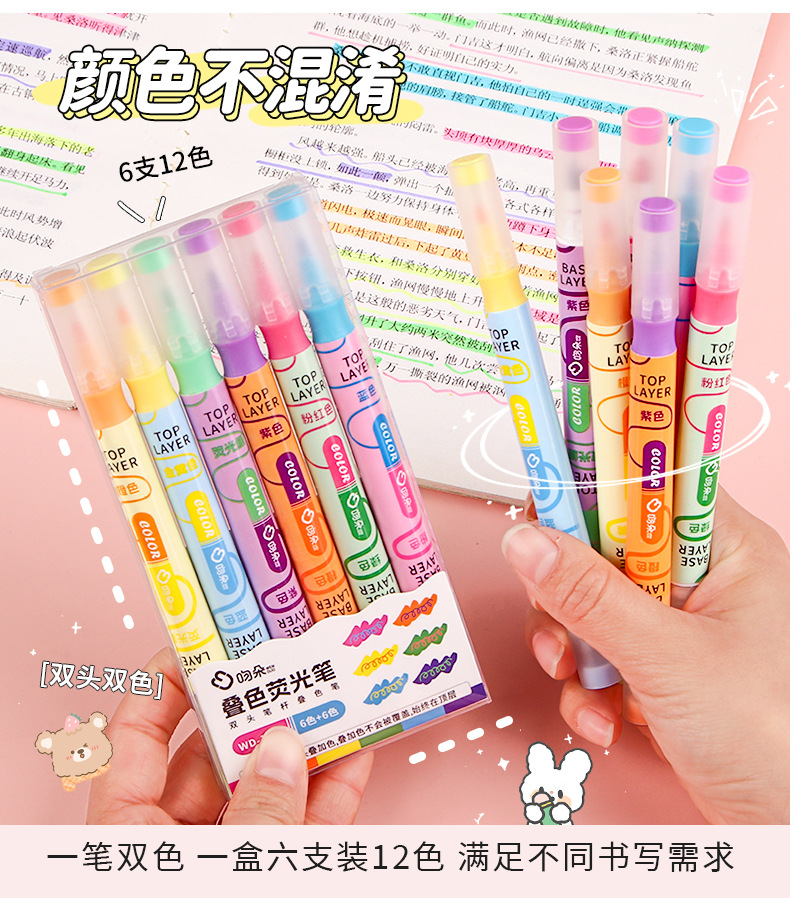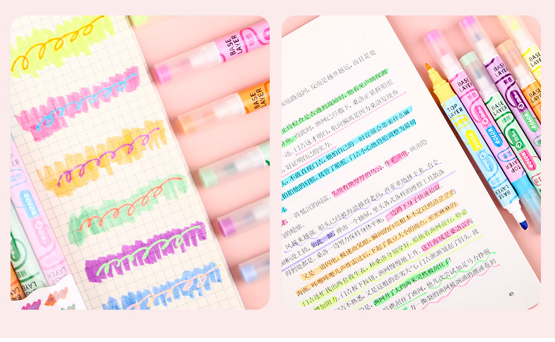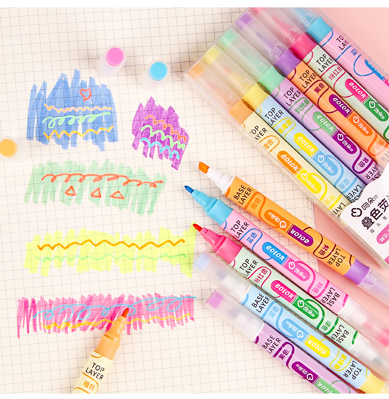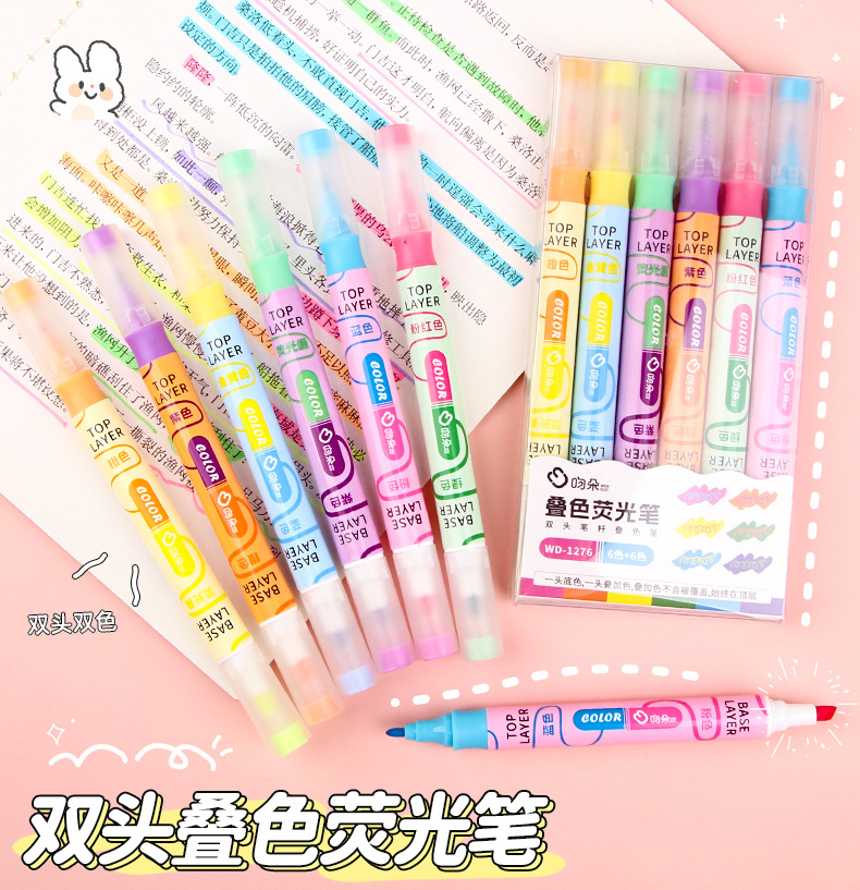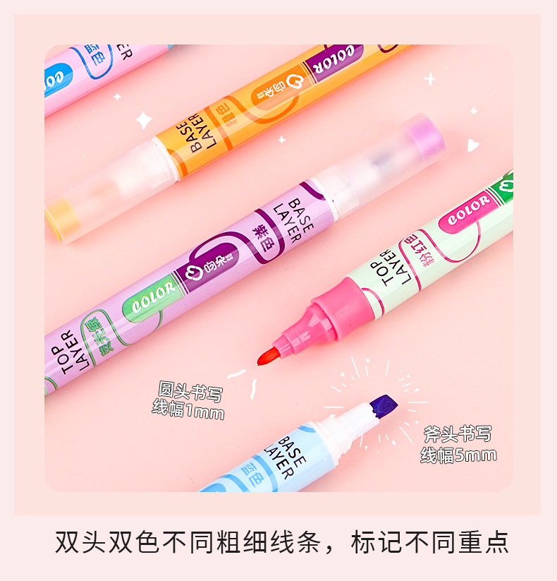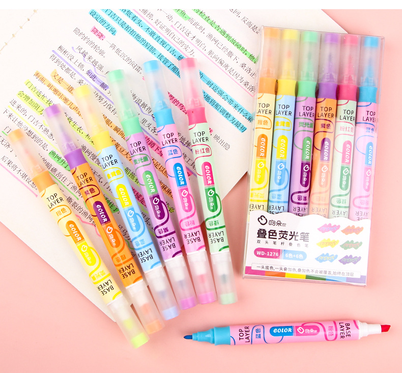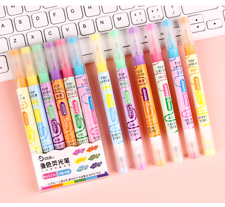 Nueva superposición de color de doble cabeza resalte pluma clave estudiante oblicuo cabeza Diario pluma color resalte pluma de alta apariencia papelería