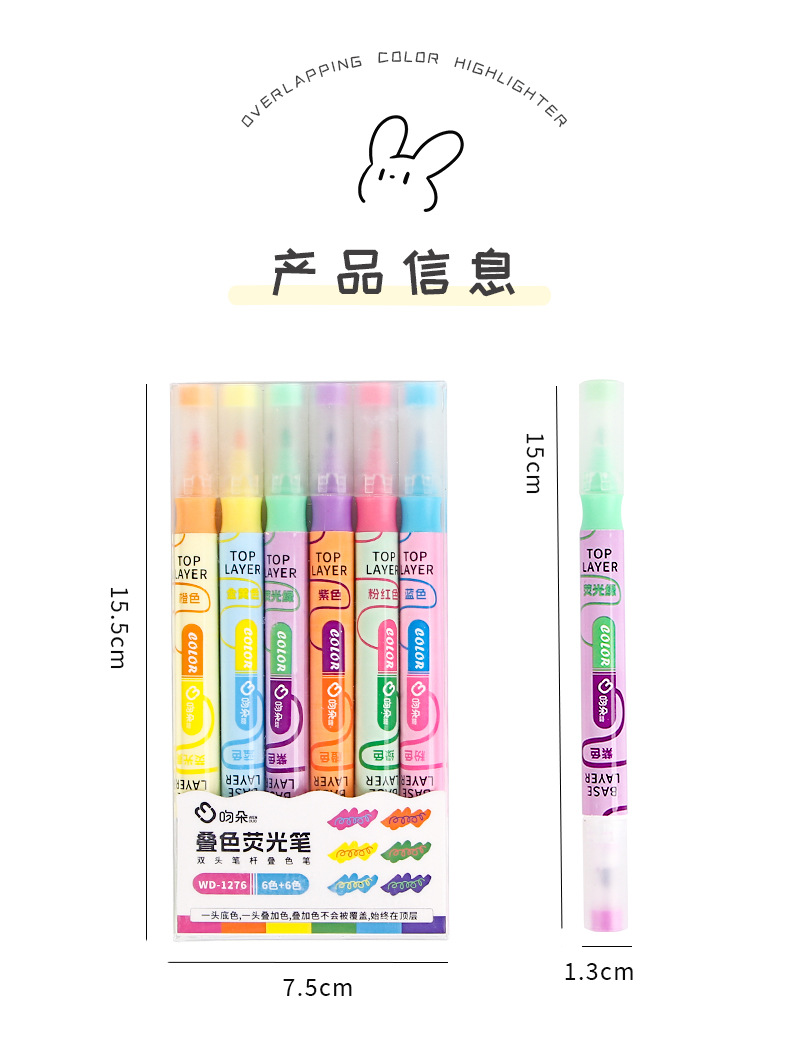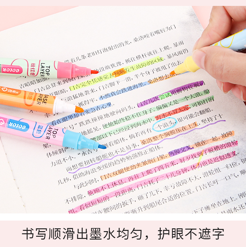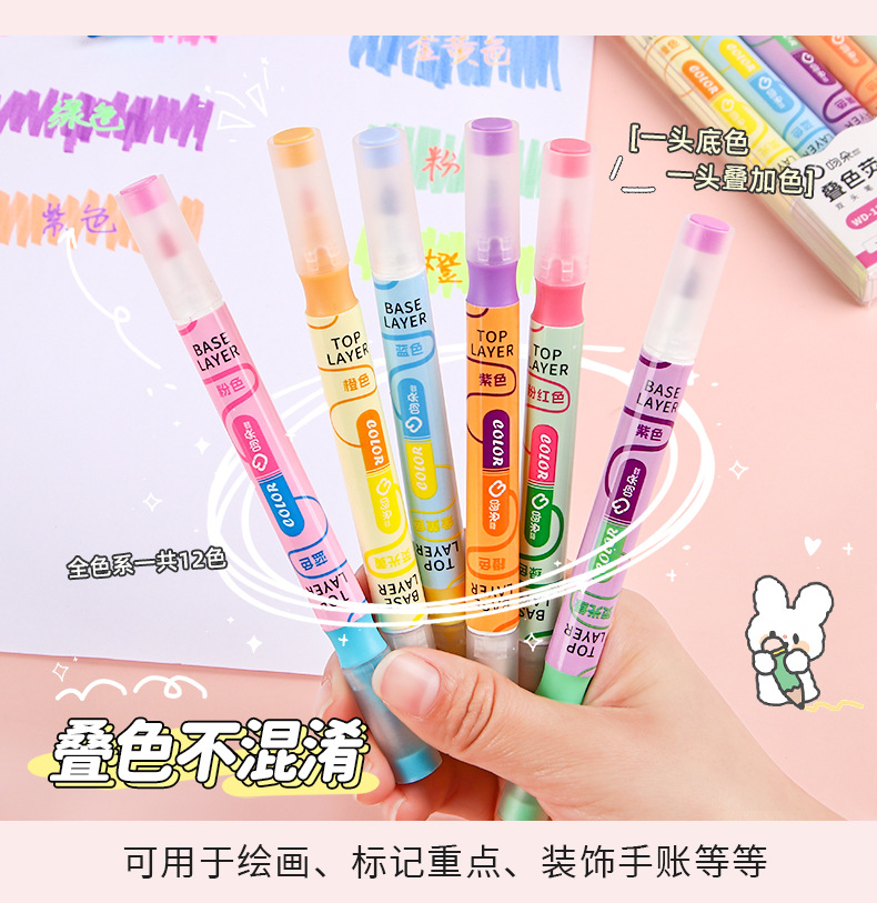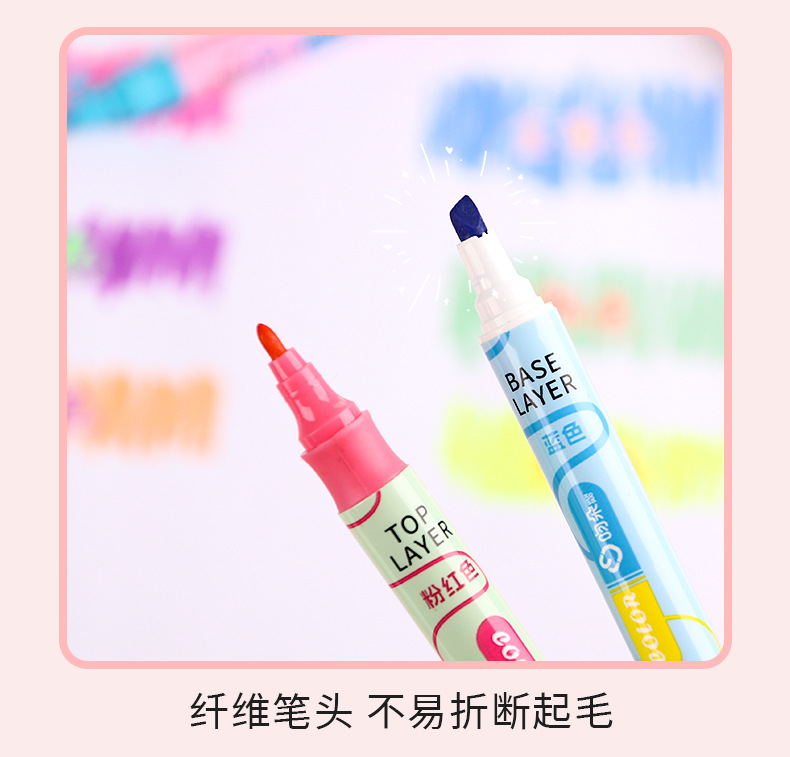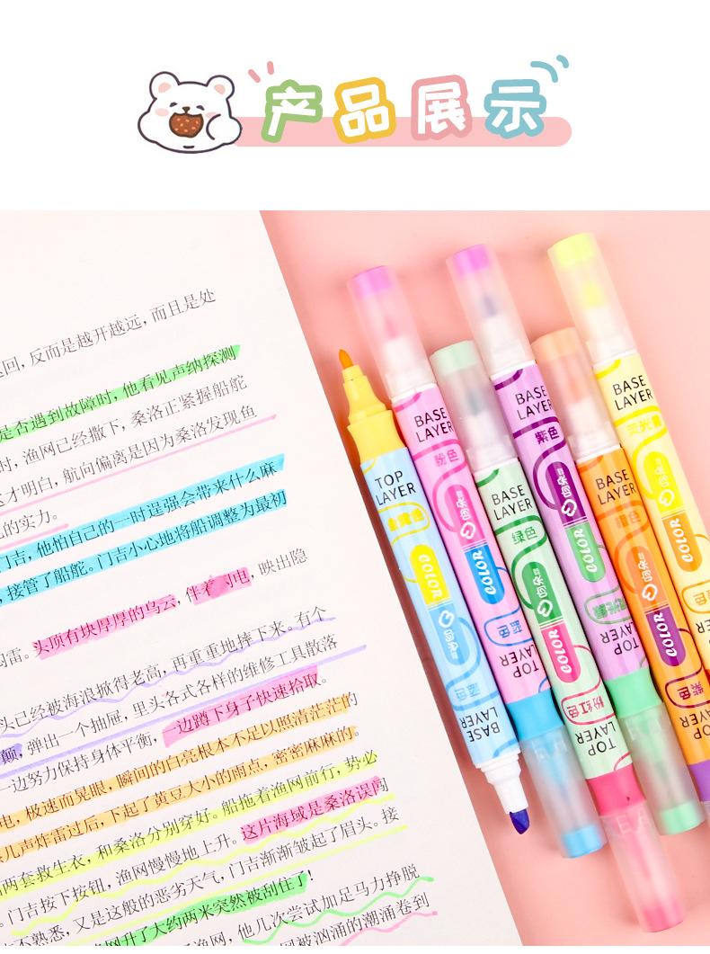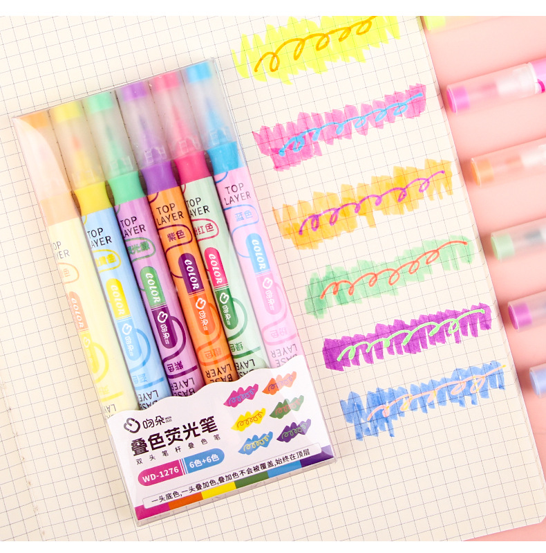 Nueva superposición de color de doble cabeza resalte pluma clave estudiante oblicuo cabeza Diario pluma color resalte pluma de alta apariencia papelería