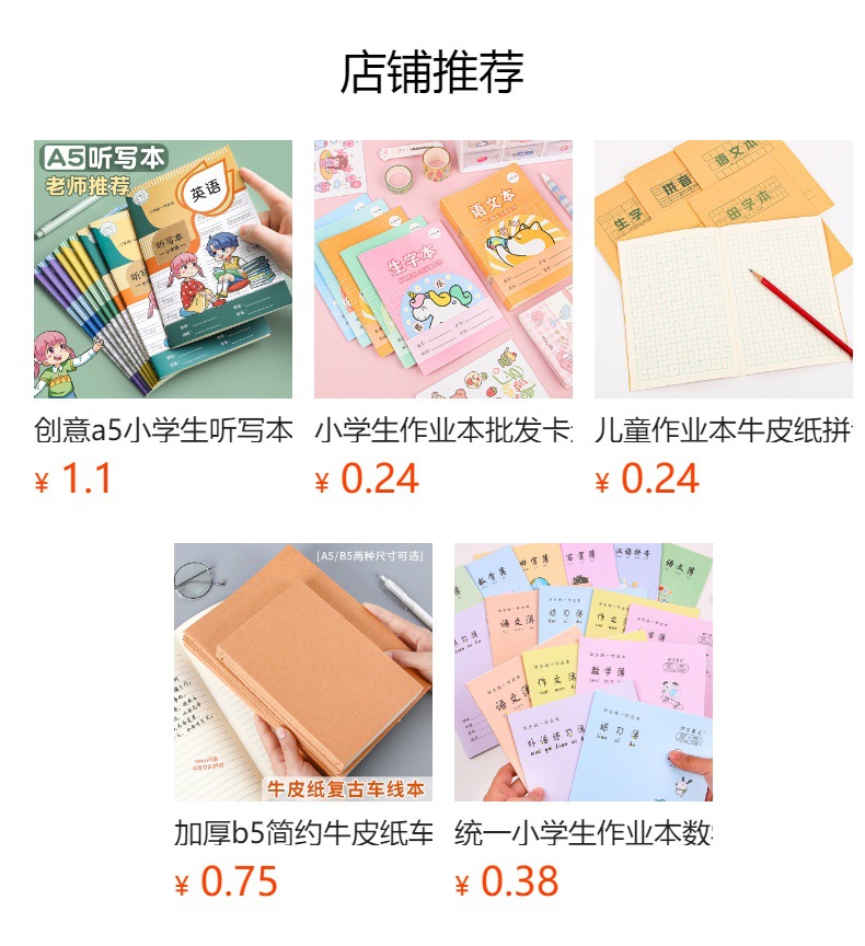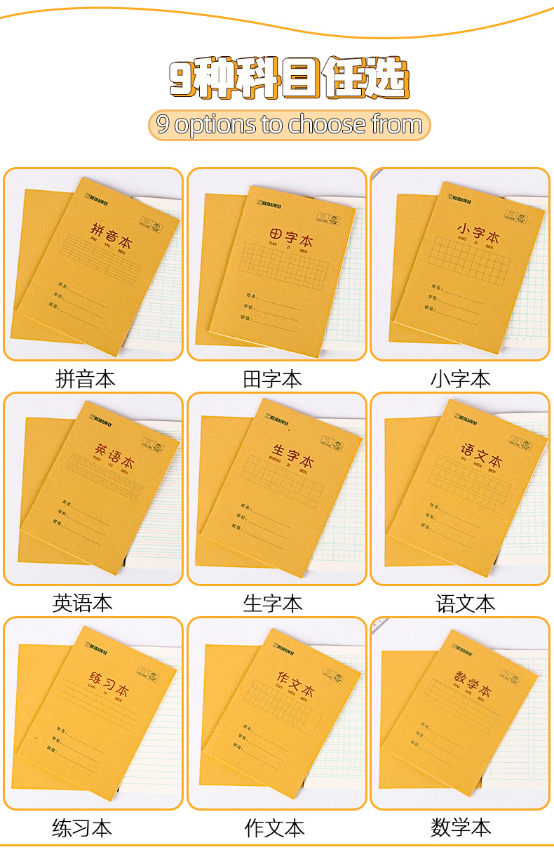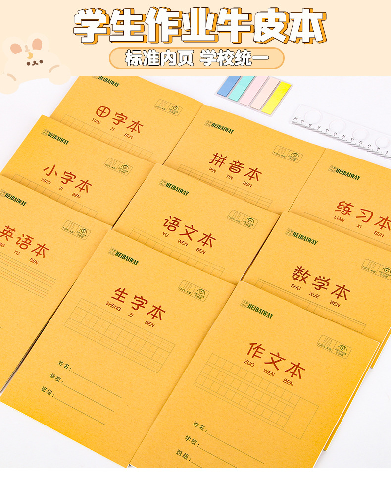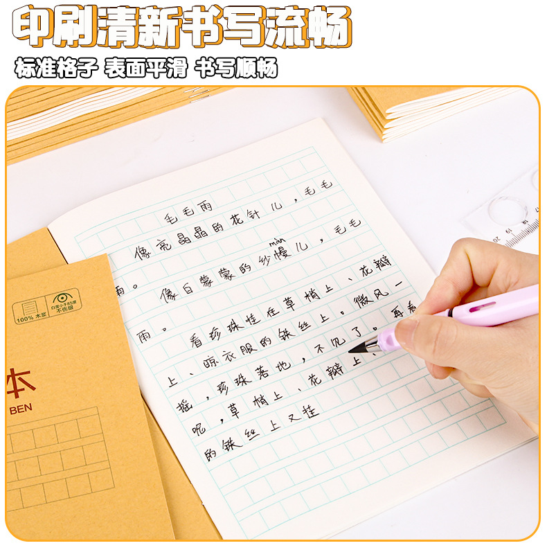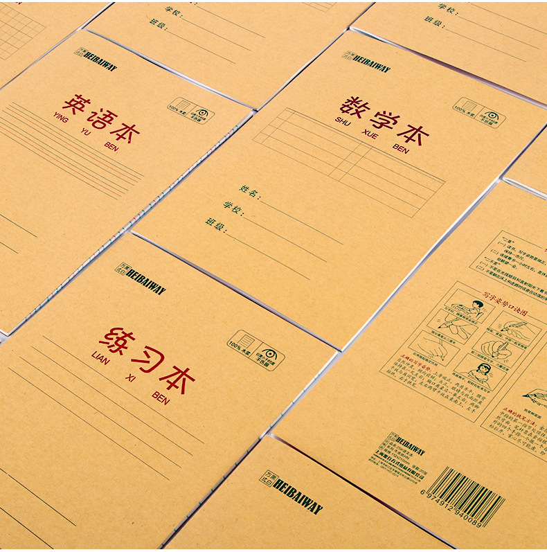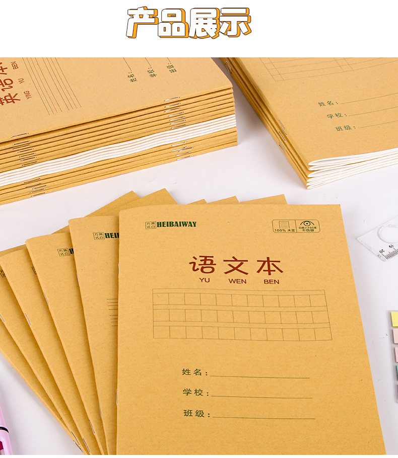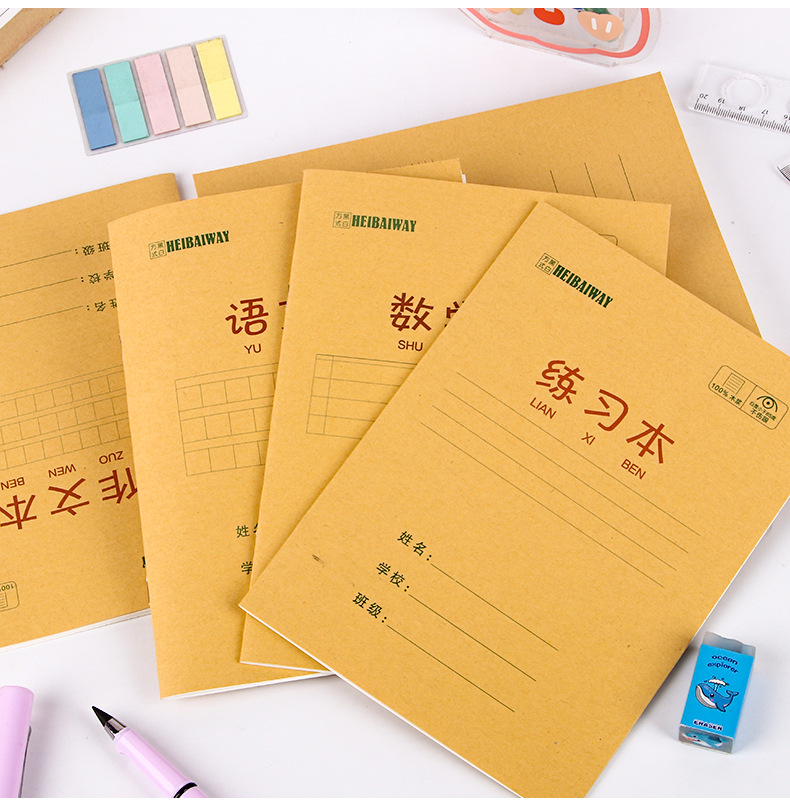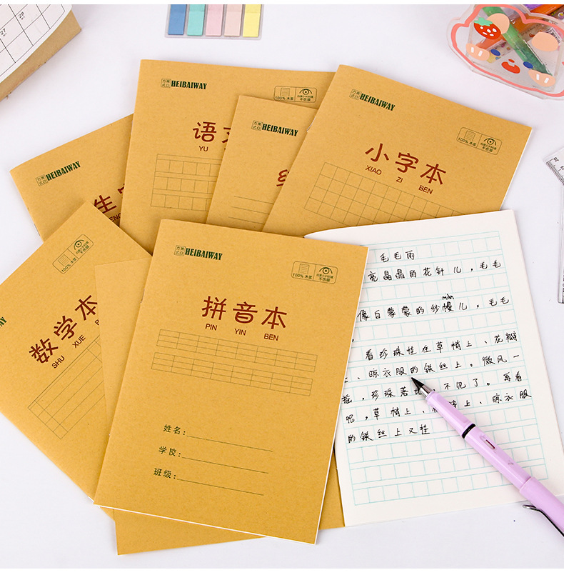 A5 libros de tareas de papel kraft de estudiantes de primaria engrosado libro de ejercicios 25K matemáticas chino inglés pinyin este papelería al por mayor