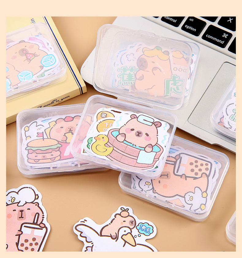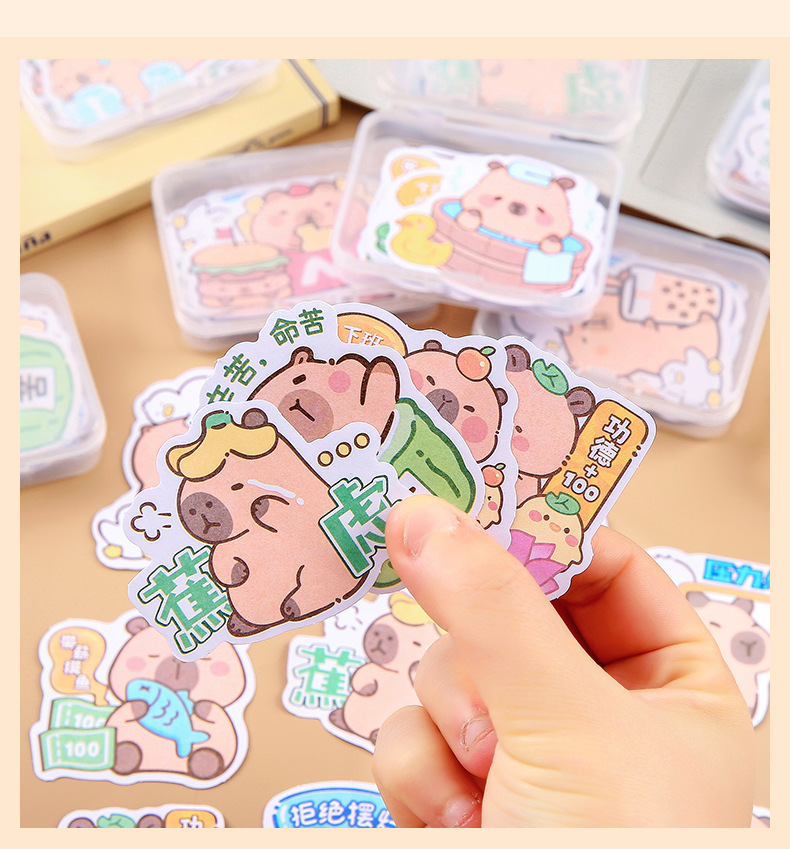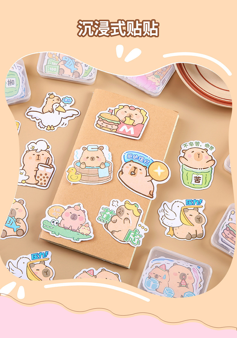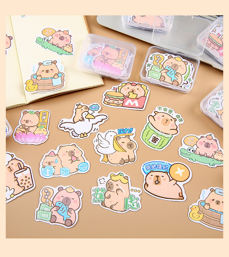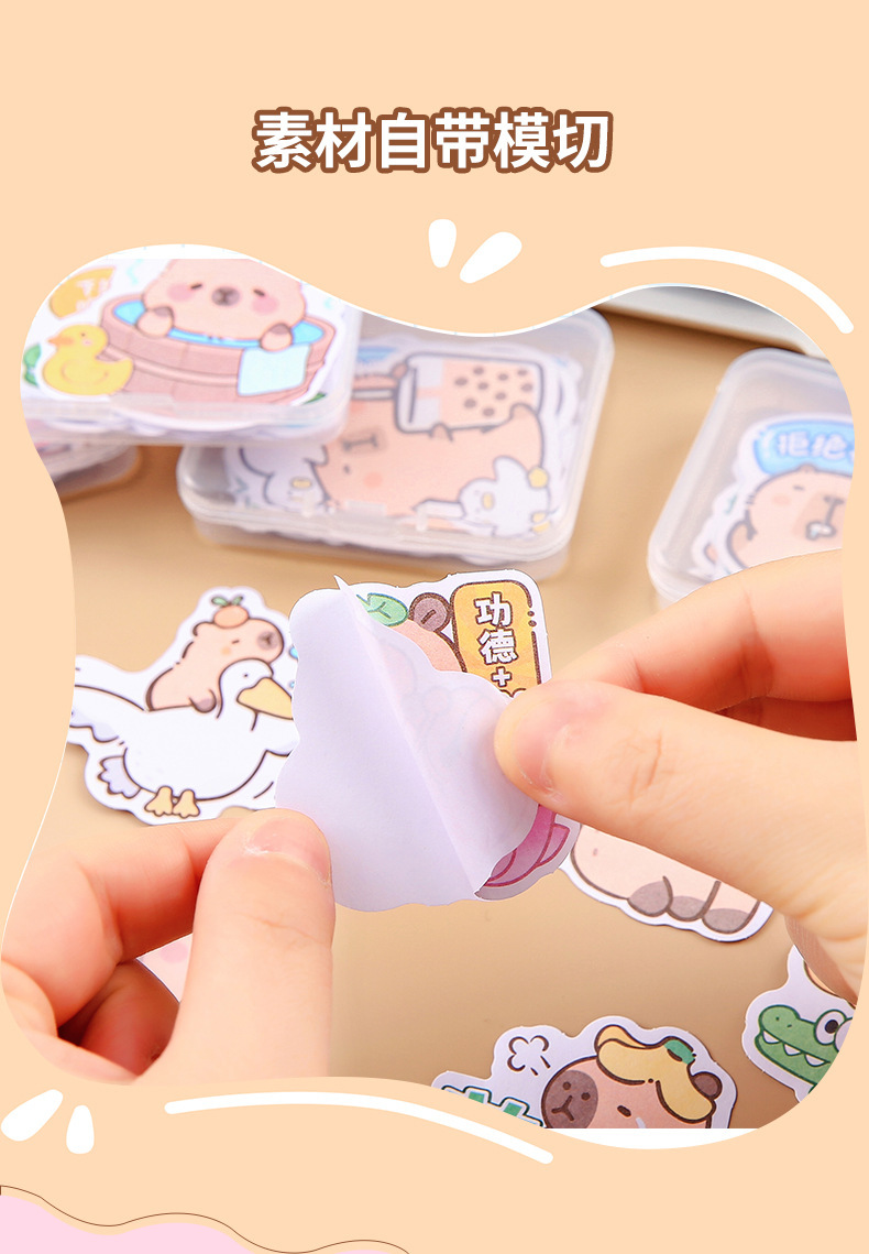 Pegatinas de forma especial de Kapibala, pegatinas de material de libro de manos de bricolaje en caja para estudiantes, pegatinas de carpincho lindo, regalos al por mayor