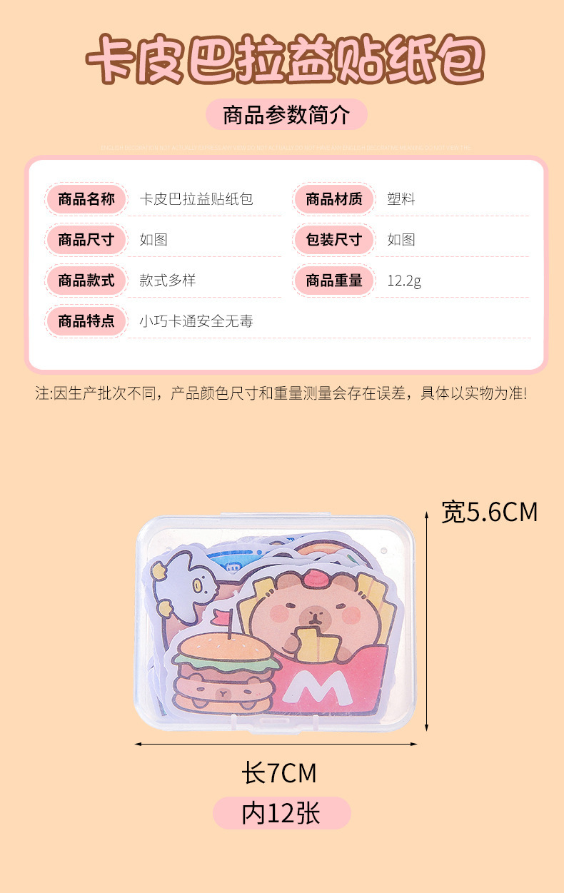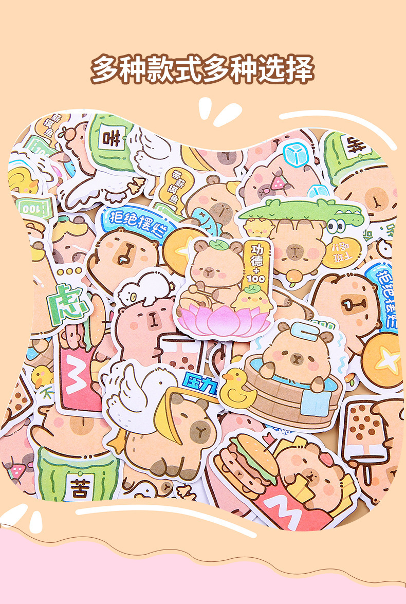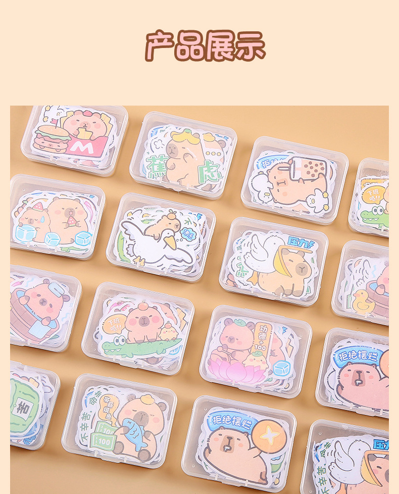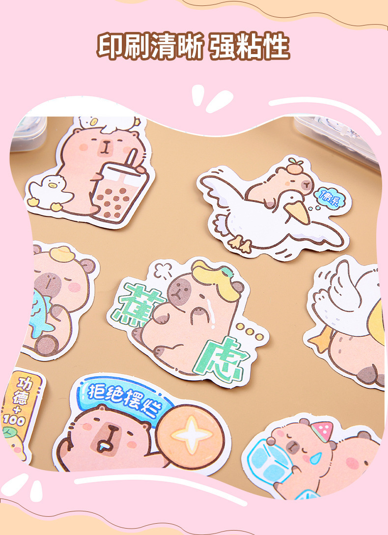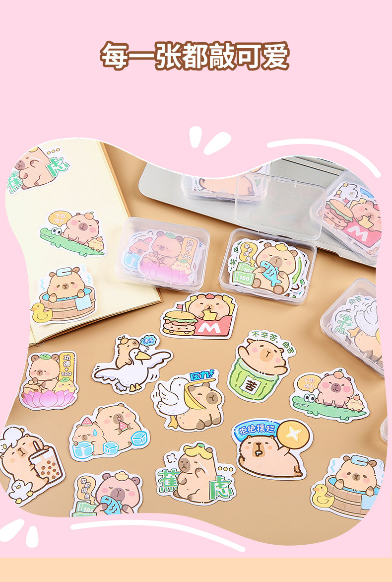 Pegatinas de forma especial de Kapibala, pegatinas de material de libro de manos de bricolaje en caja para estudiantes, pegatinas de carpincho lindo, regalos al por mayor
