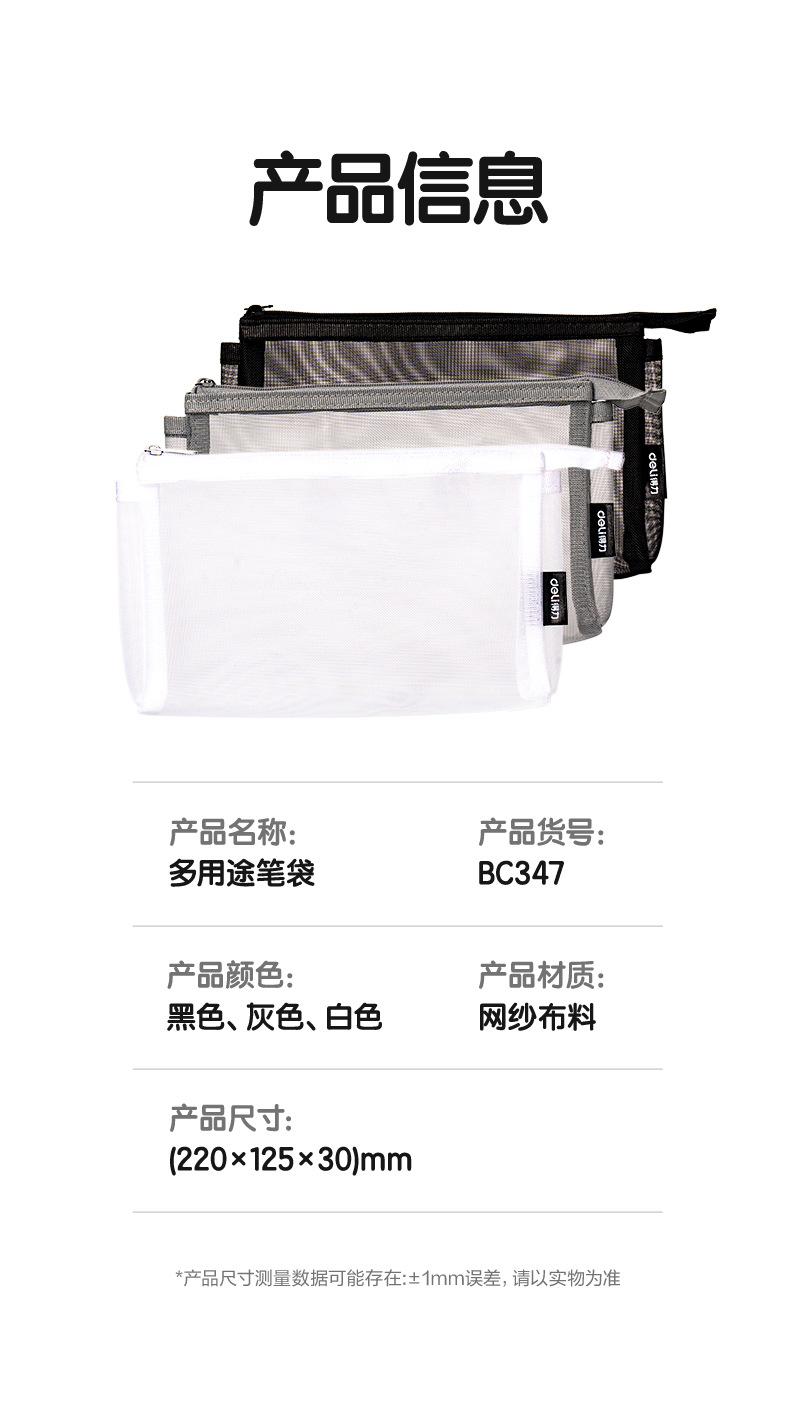 Bolsa de bolígrafo de examen básica de poder, bolsas de papelería de estudiantes tridimensionales, bolsas de bolígrafo de malla transparentes, alto valor de cara, ins simple