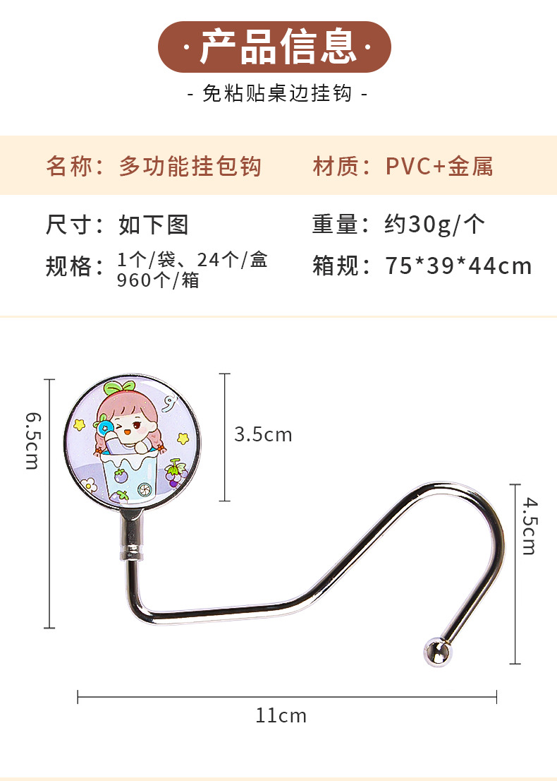 Dibujos animados Escuela Primaria estudiante escritorio bolsa gancho especial artefacto pasta-libre extraíble gancho de escritorio sin costuras al por mayor