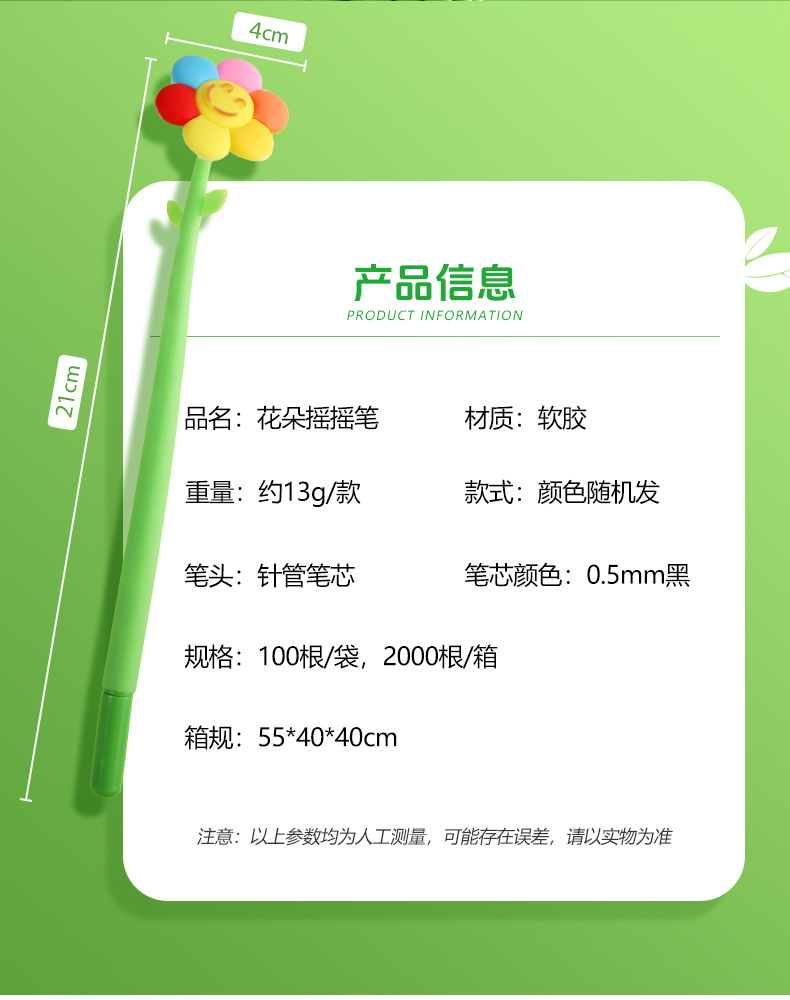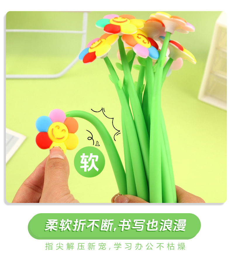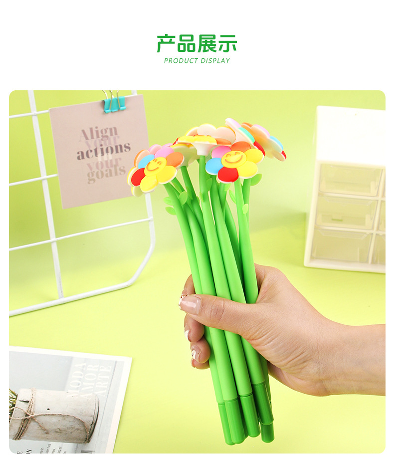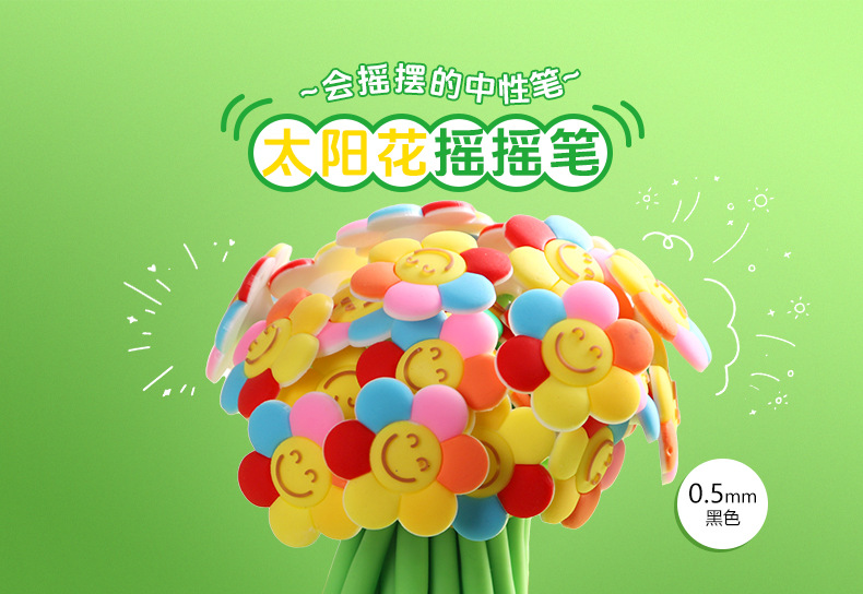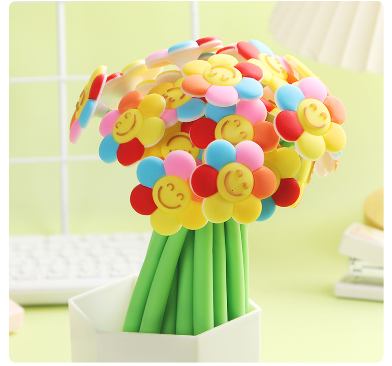 Bolígrafo oscilante girasol creativo estudiante de escuela primaria linda cara sonriente flor bolígrafo de góner de gran capacidad bolígrafo de preguntas de pincel de alto valor papelería