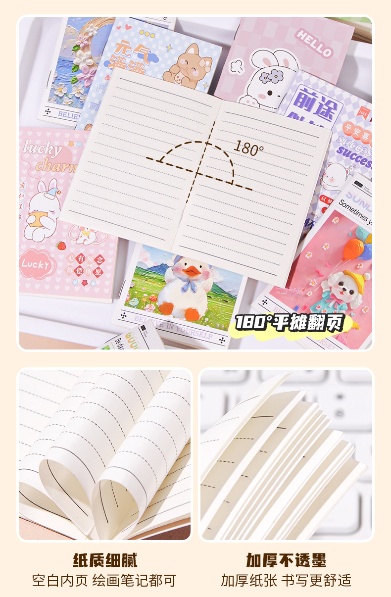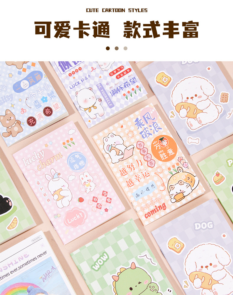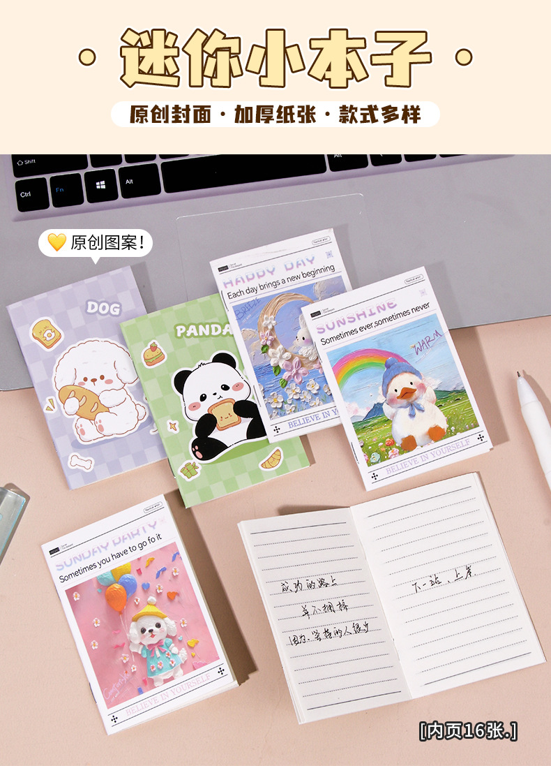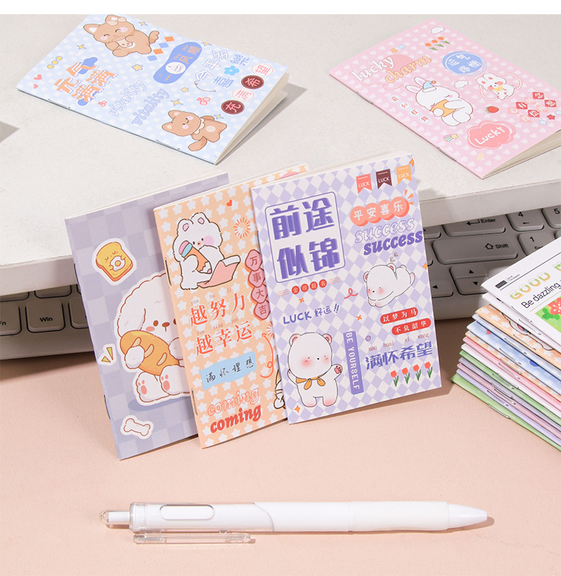 Mini cuaderno de estilo ins, cuaderno inspirador engrosado, cuaderno de línea horizontal lindo de dibujos animados portátil, libro de uñas de caballo de recompensa