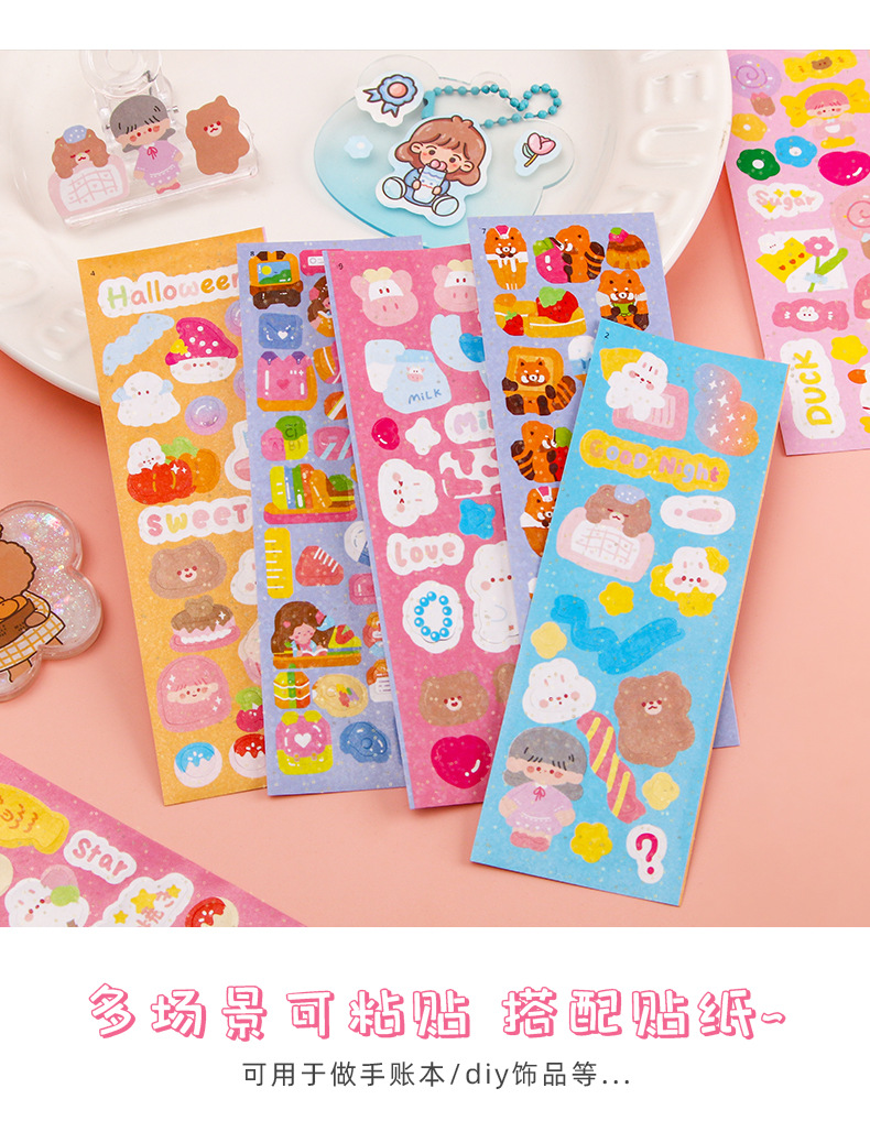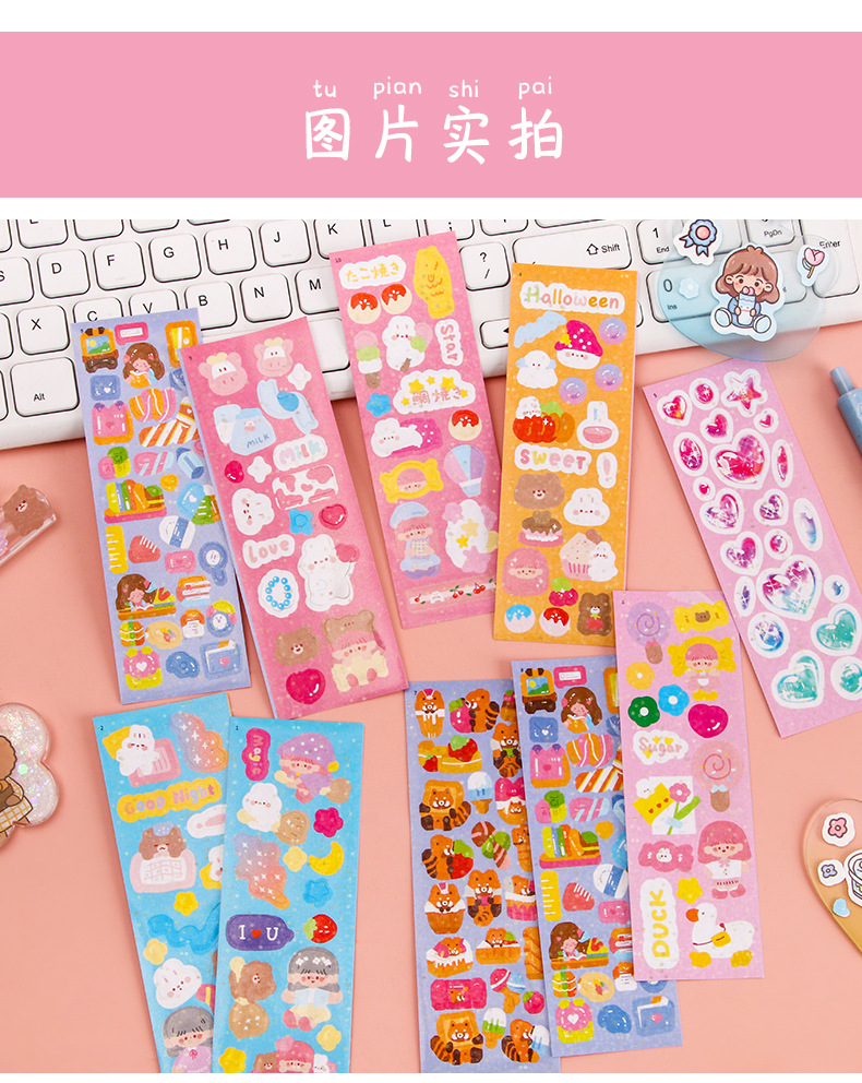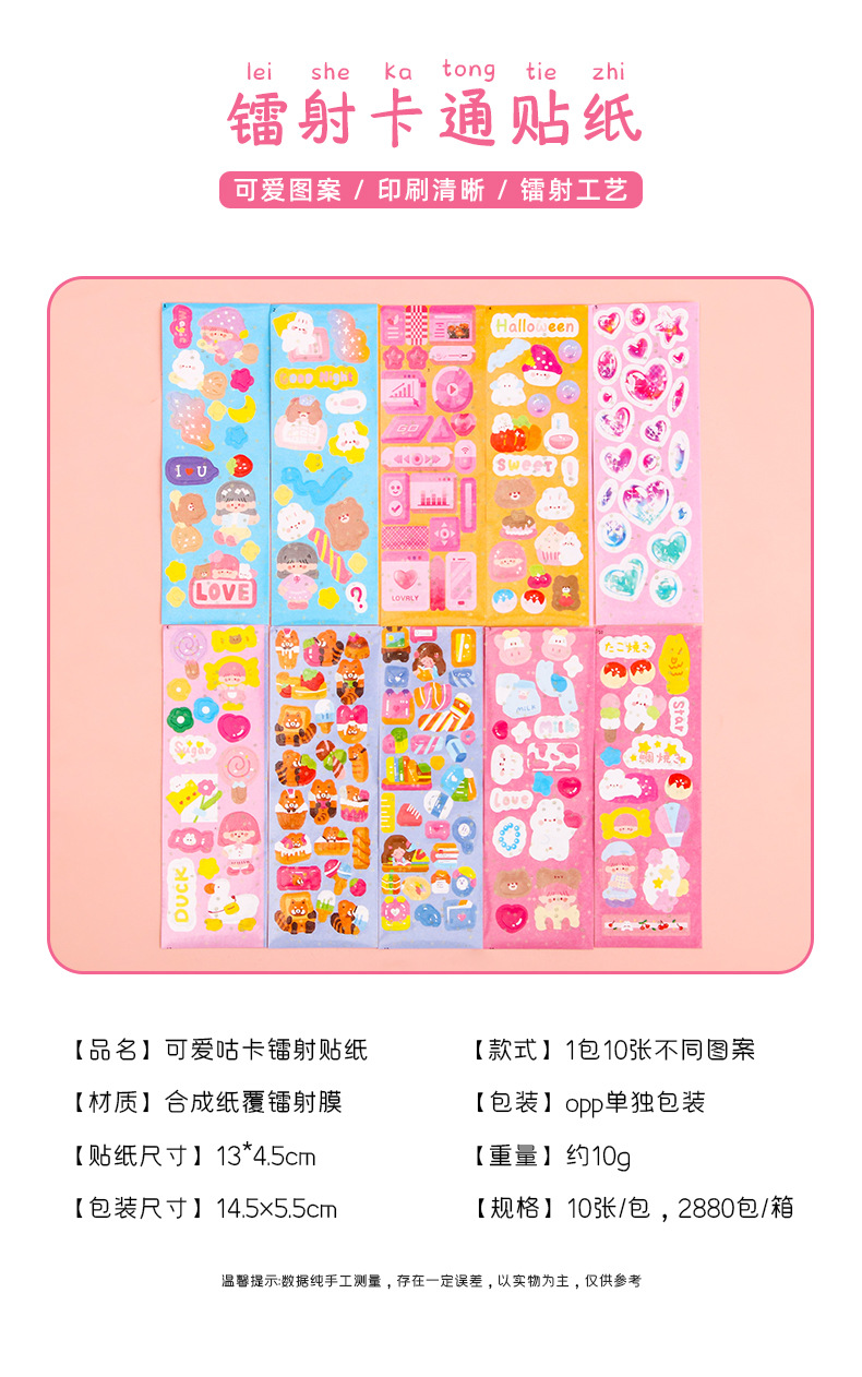 Nuevas pegatinas láser lindas, pegatinas de dibujos animados de viento ins, tarjetas de bricolaje para niños, pegatinas de decoración de cuentas de mano, regalos al por mayor