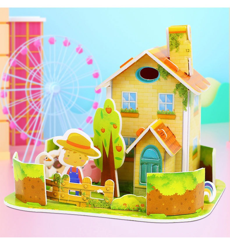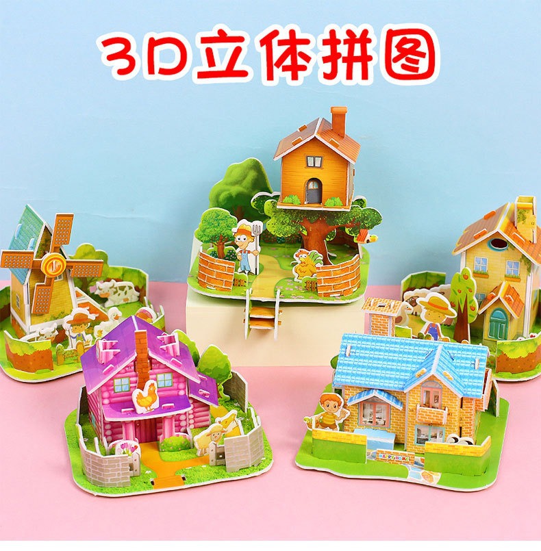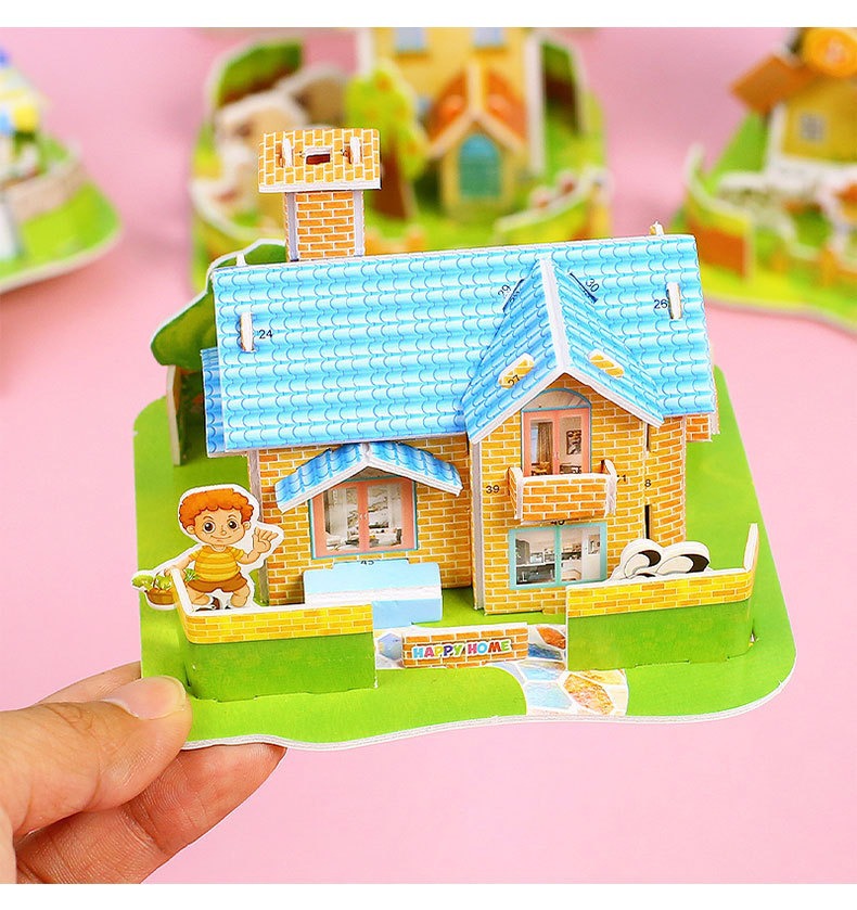 3D estereoscópico casa pequeña tarjeta de rompecabezas niños con 6 - 10 años de edad DIY papel de ensamblaje a mano puzzle de educación temprana al por mayor