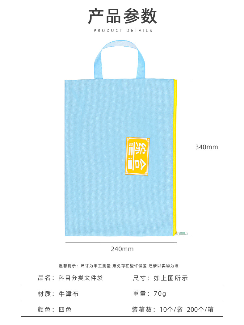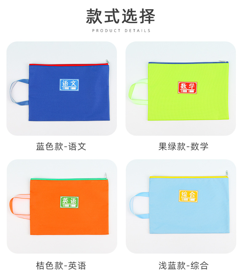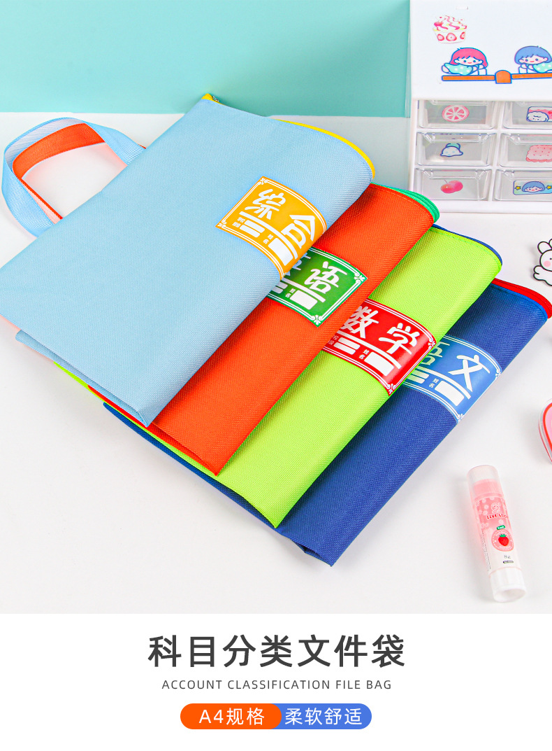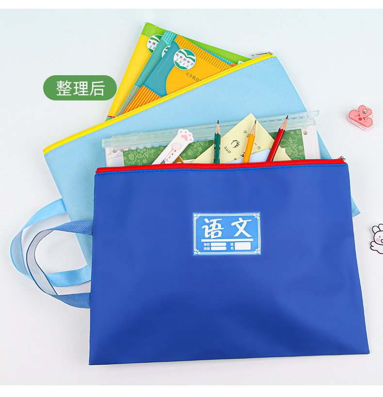 Estudiante clasificación de la asignatura bolsa de archivo de gran capacidad impermeable engrosada Oxford bolsa A4 Portátil cremallera bolsa de almacenamiento de papelería