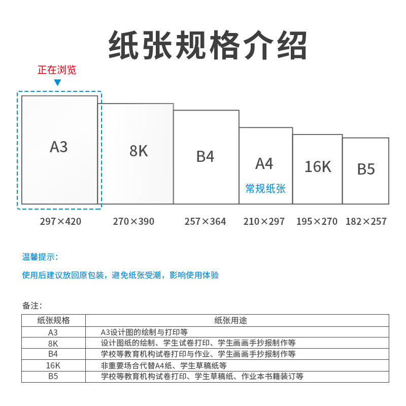 | Colores | Papel de copia A3-500 hojas/paquete [70g] |