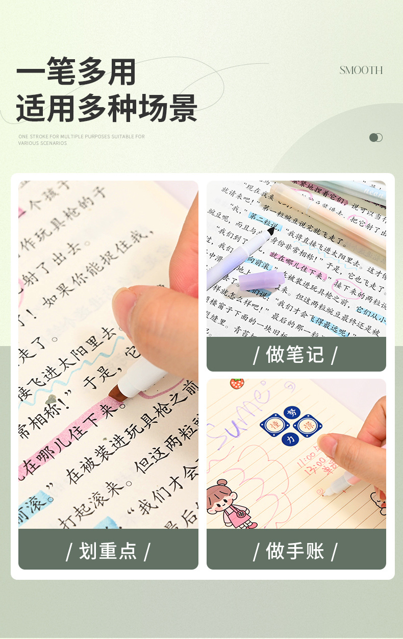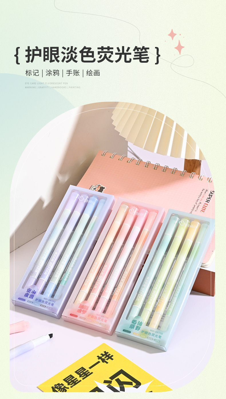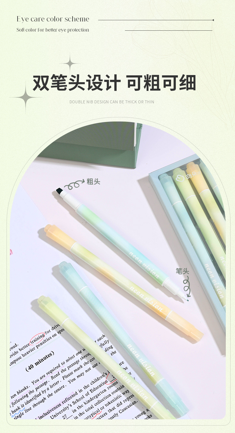 Nuevo de doble cabeza de protección ocular resaltador estudiante de alto aspecto marca pluma gran capacidad marca diario pluma conjunto al por mayor