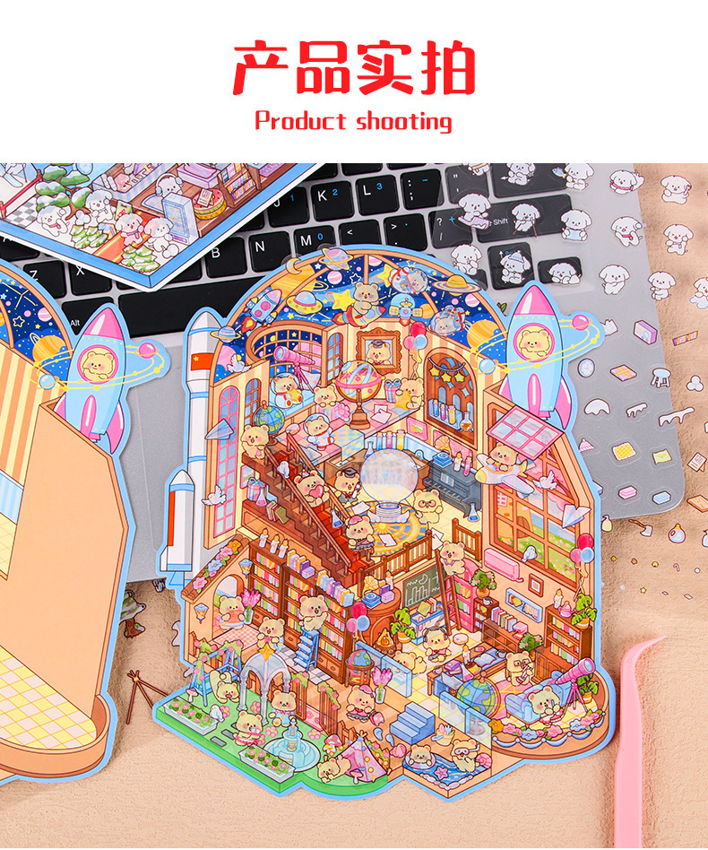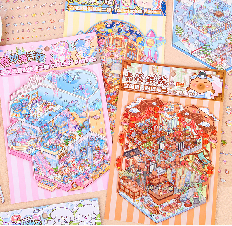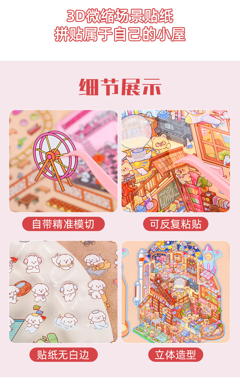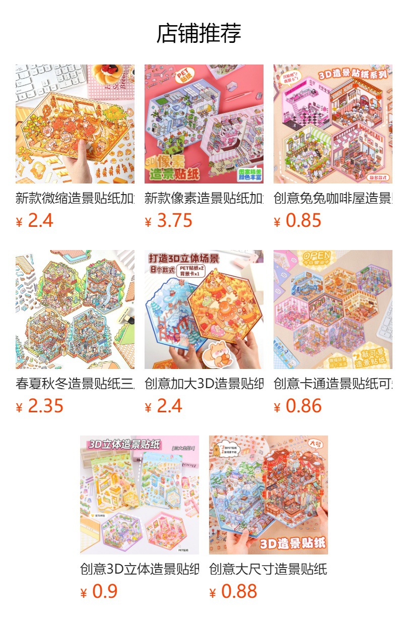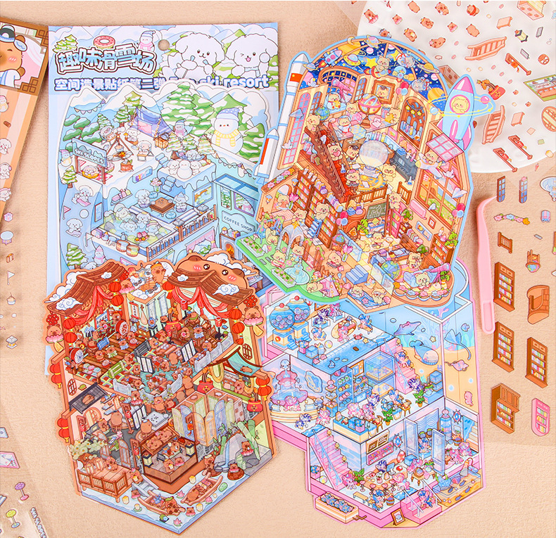 Pegatinas de paisajismo de gran tamaño, apilamiento 3D personalizado, cabina en miniatura tridimensional, material de escena de descompresión, pegatinas de cuenta manual al por mayor