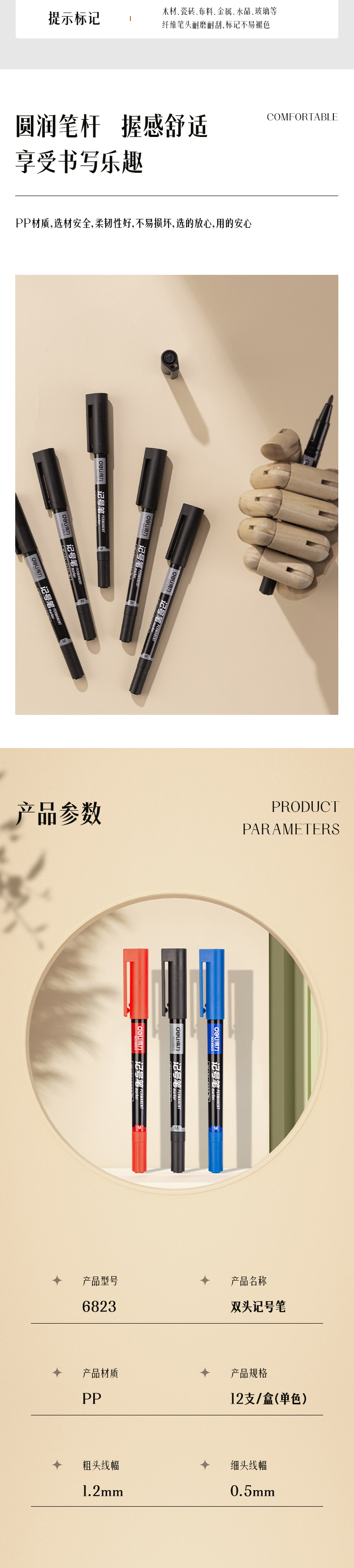 Deli / Deliky marcador de doble cabeza de línea de gancho de línea de marcación limitada impermeable no fácil de descolorar línea de gancho para artistas
