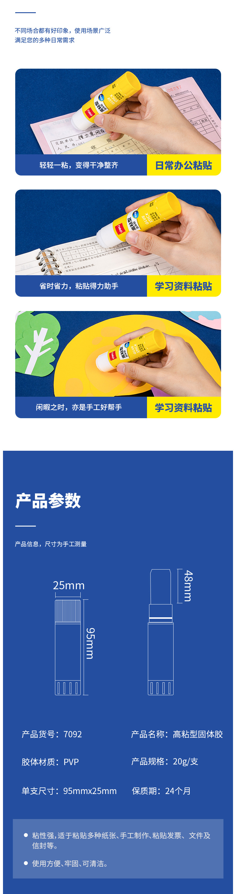 Deli/Deli 7092 barra de pegamento PVP pegamento sólido oficina grande finanzas jardín de infantes para niños manual al por mayor