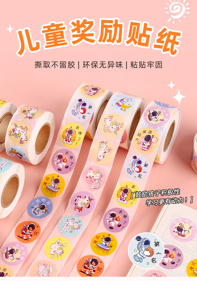 Astronauta creativo enrollar pegatinas de recompensa de dibujos animados al por mayor pegatinas de recompensa de jardín de infantes pegatinas de incentivo para estudiantes