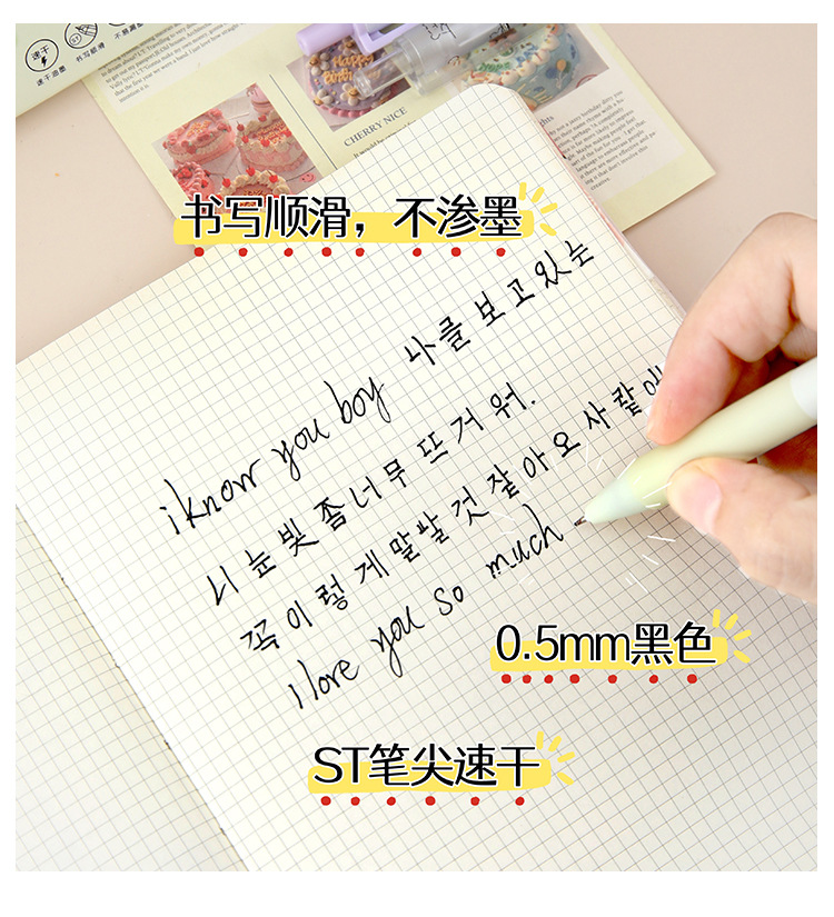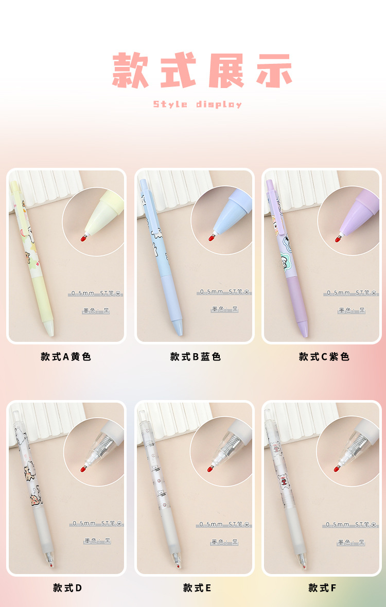 Caricatura pulsable cepillo neutro bolígrafo al por mayor especial para estudiantes de alto valor facial rápido secado ST cabeza suave 0.5mm bolígrafo negro