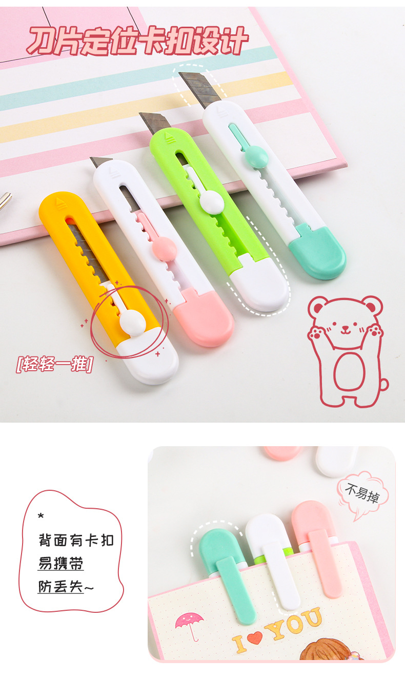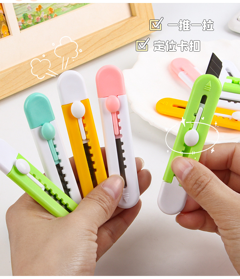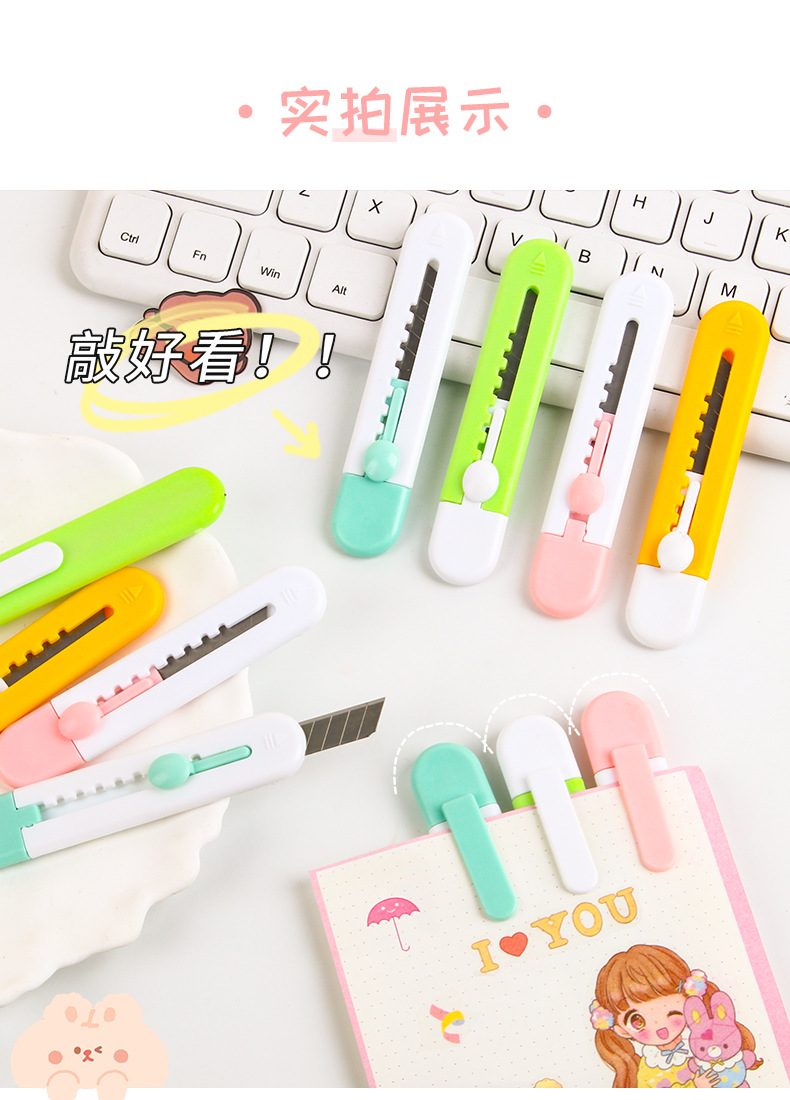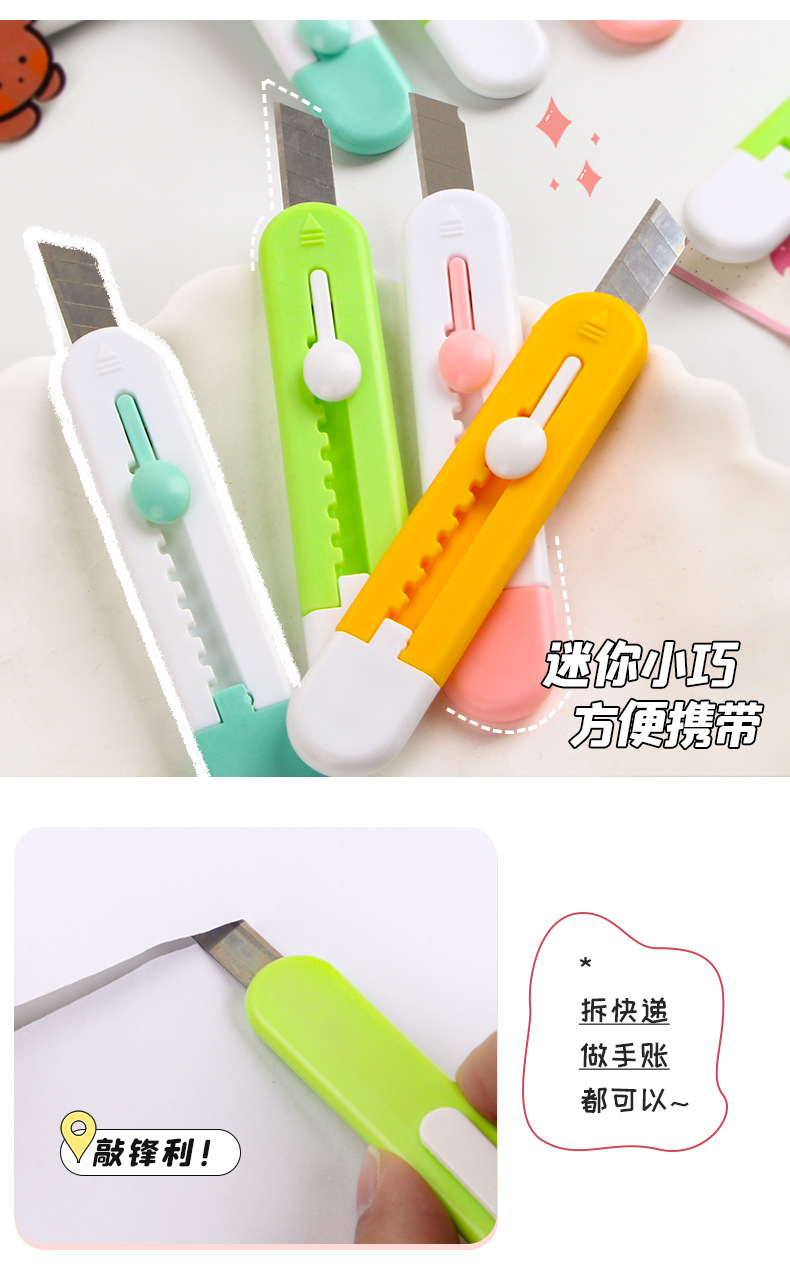 Hermoso cuchillo de dibujos animados afilado mini portátil expreso desempaquetado artefacto de oficina estudiante cuchillo de corte de papel al por mayor