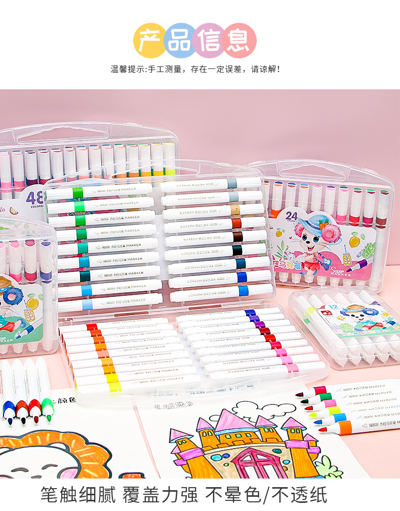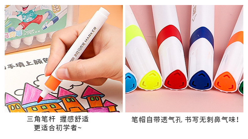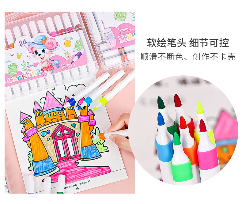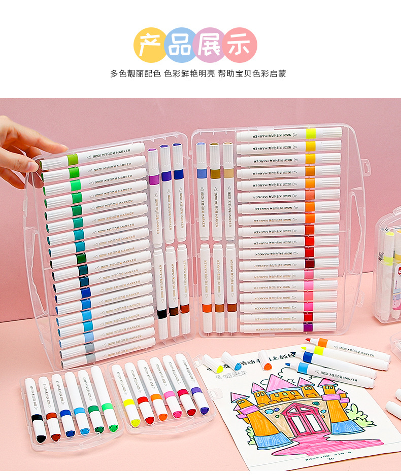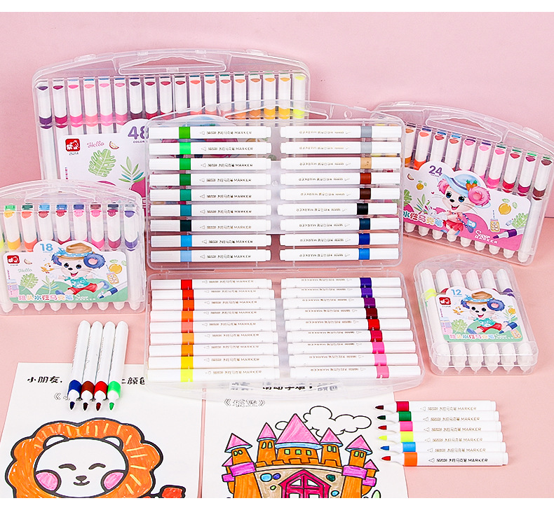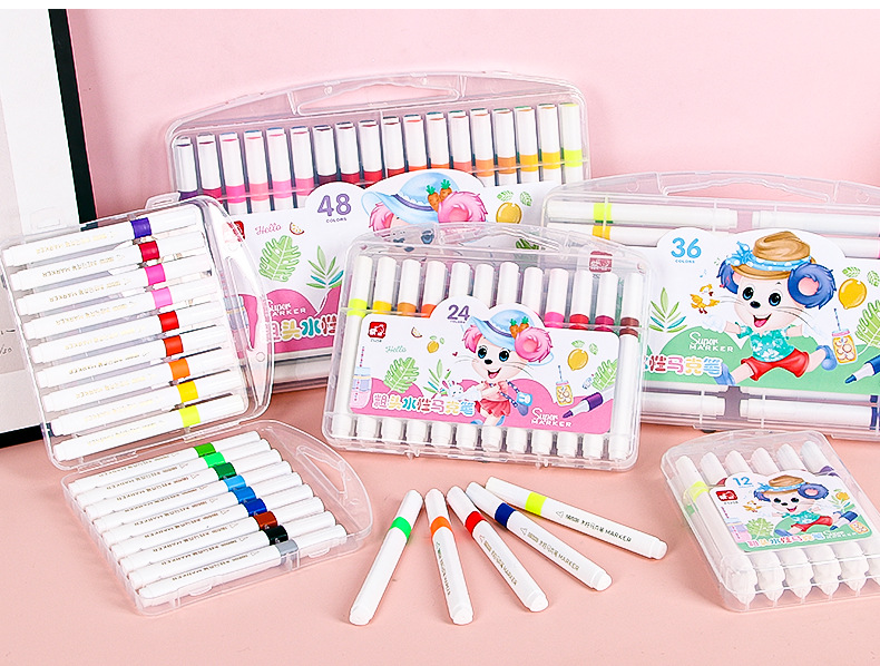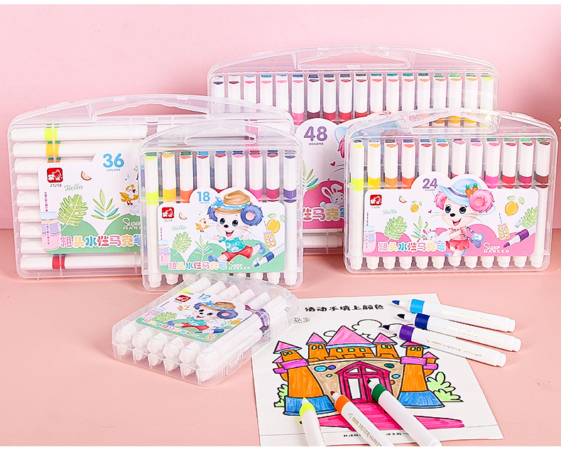 Nuevo marcador a base de agua de gran capacidad para el arte de los niños de jardín de infantes 24 colores 48 colores pluma de color de cabeza suave al por mayor