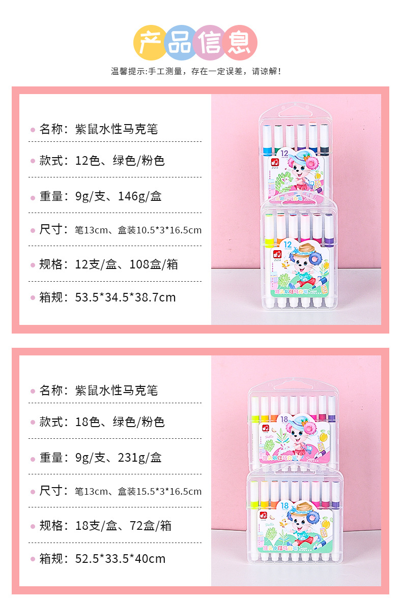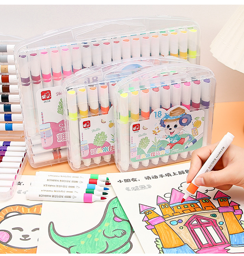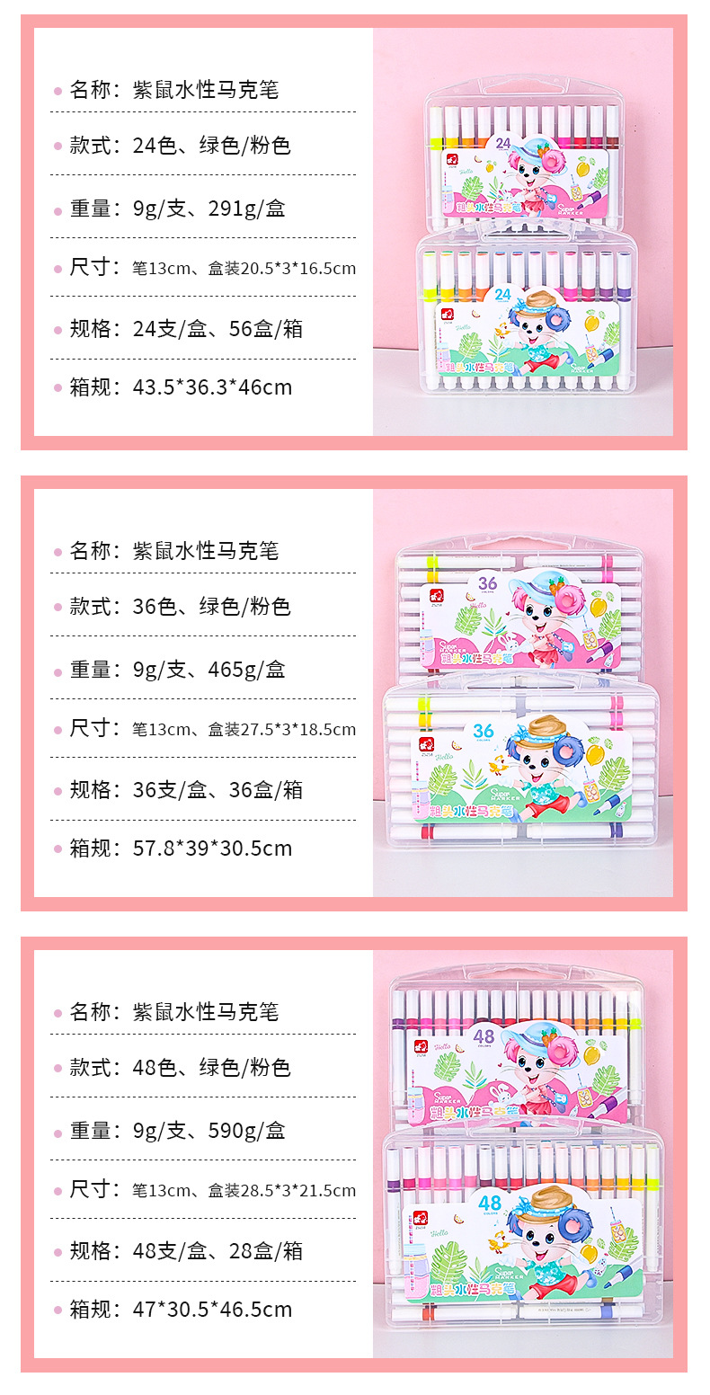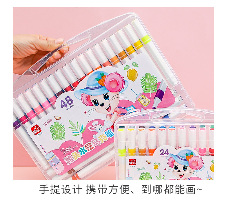 Nuevo marcador a base de agua de gran capacidad para el arte de los niños de jardín de infantes 24 colores 48 colores pluma de color de cabeza suave al por mayor