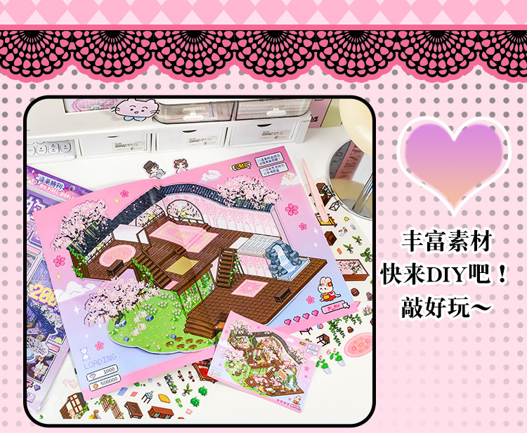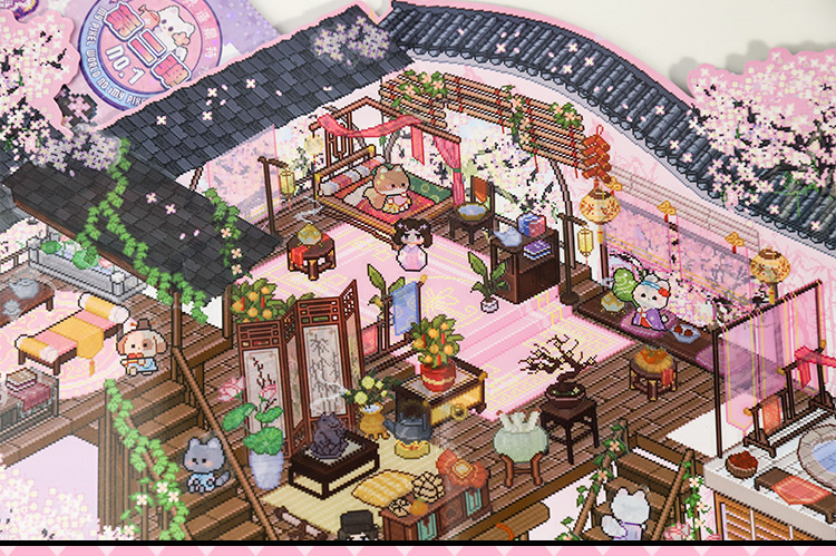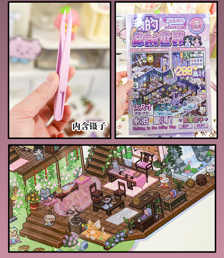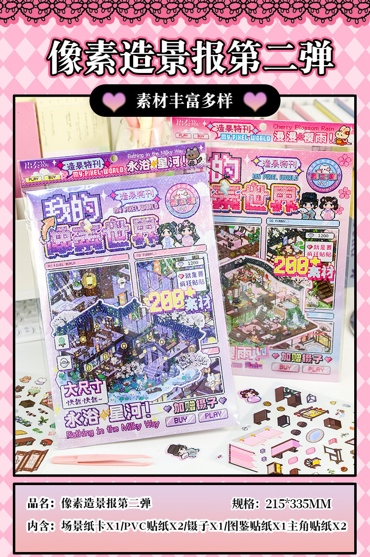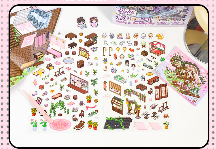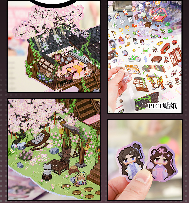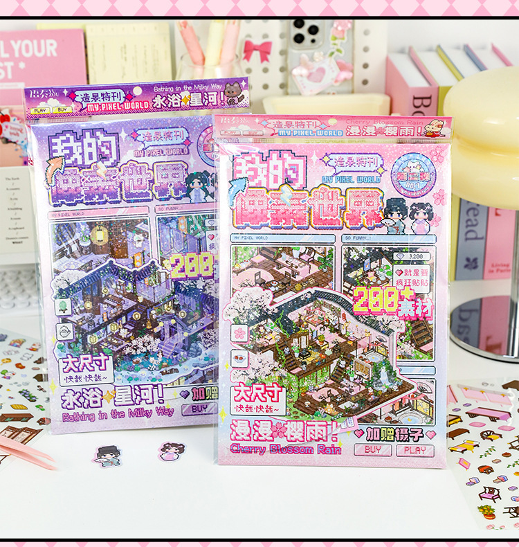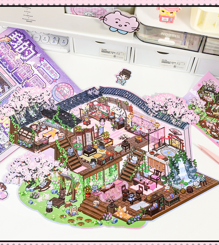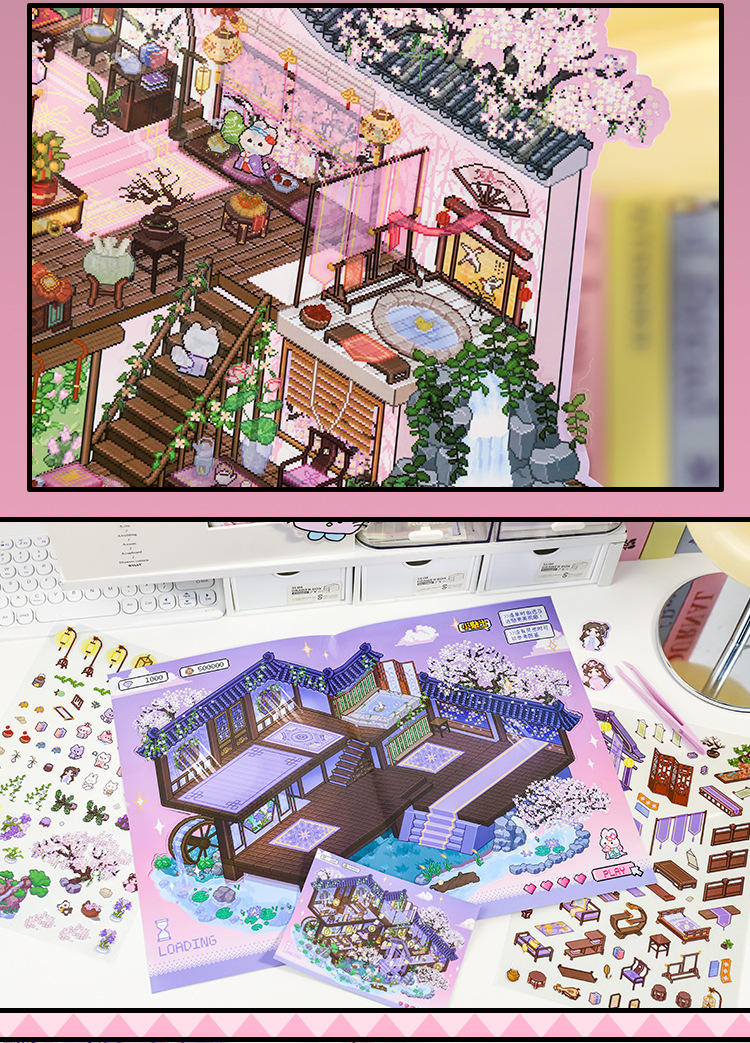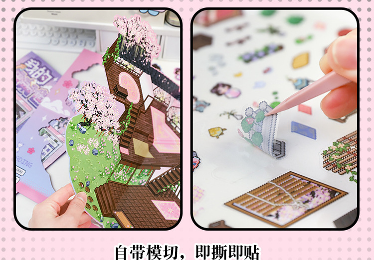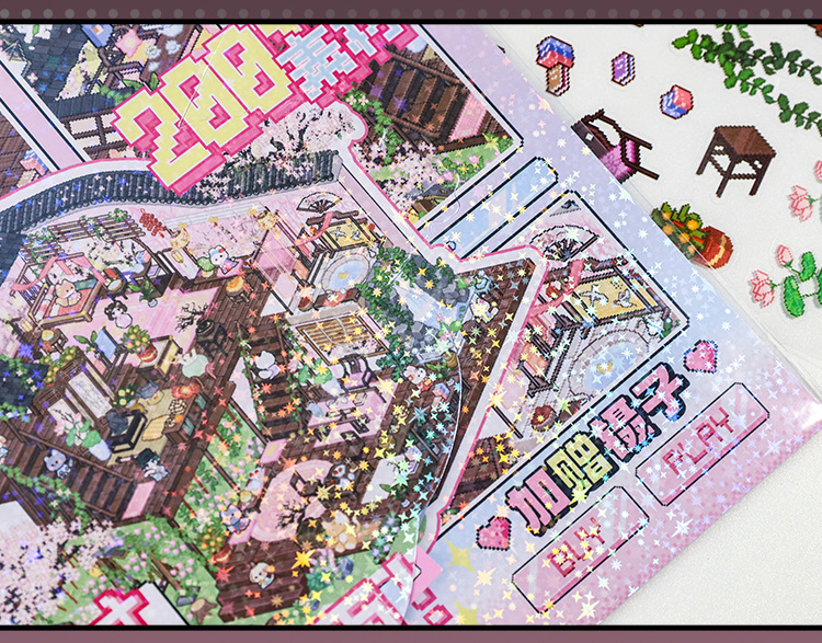 Nuevas pegatinas de paisajismo de píxeles para aumentar las pegatinas de almacenamiento de recorte gratuito apilado visual 3D pegatinas decorativas de bricolaje tridimensionales
