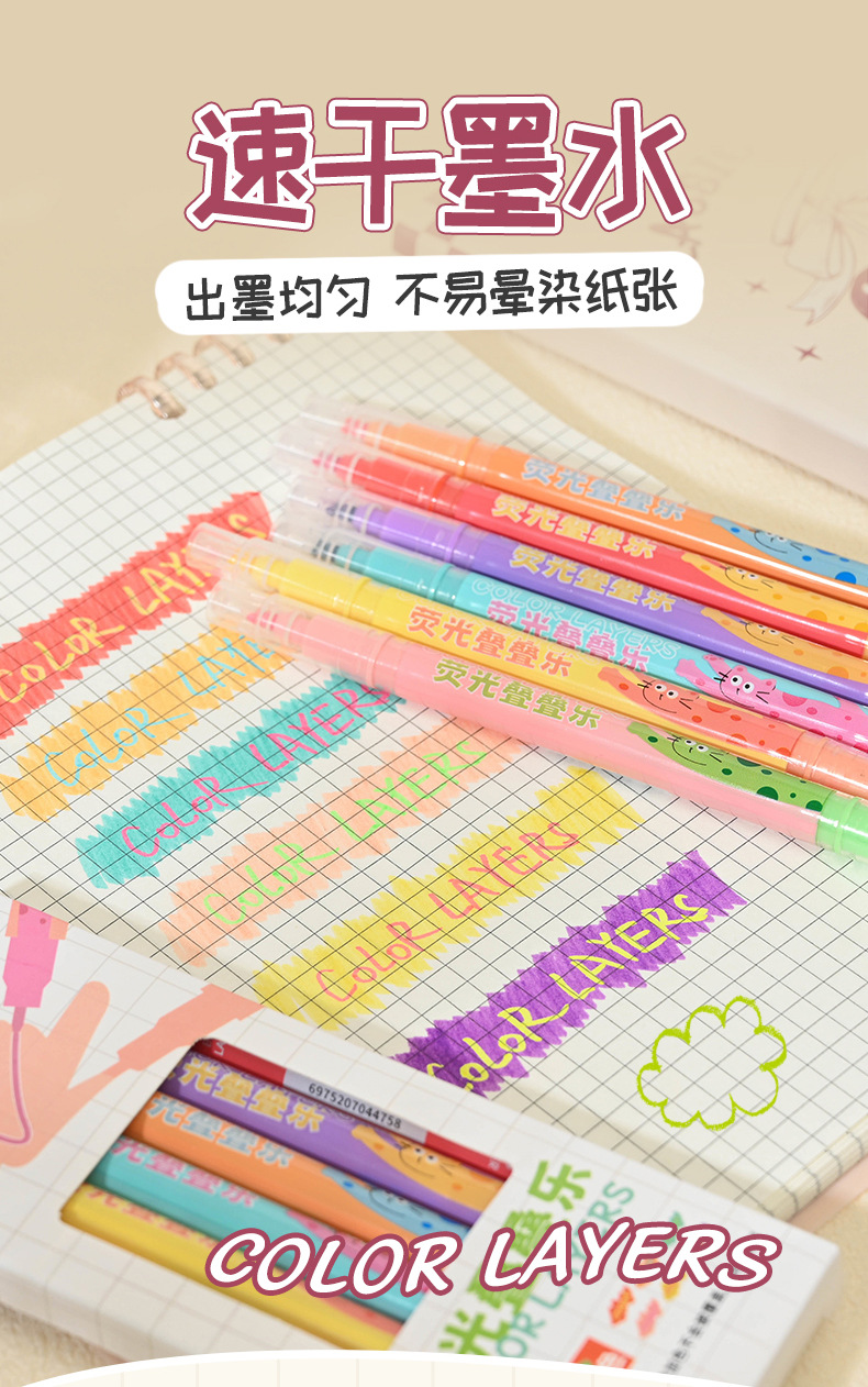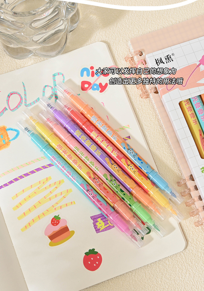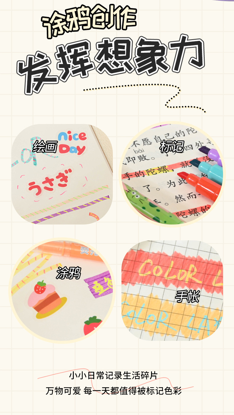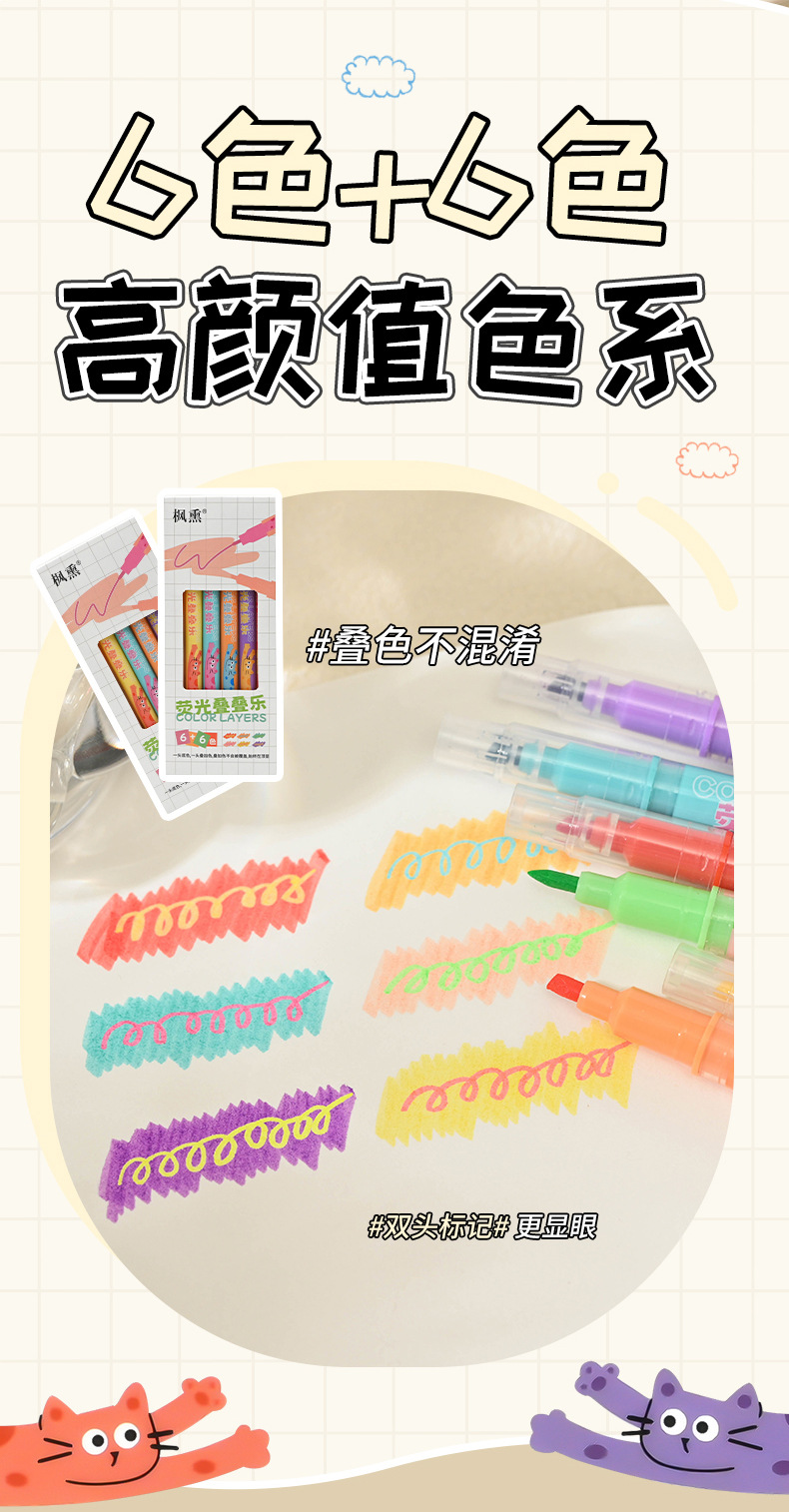 Creativo de doble cabeza de doble color marcador de color de los estudiantes de la escuela primaria de alto valor de color de la cuenta de mano de graffiti marcador