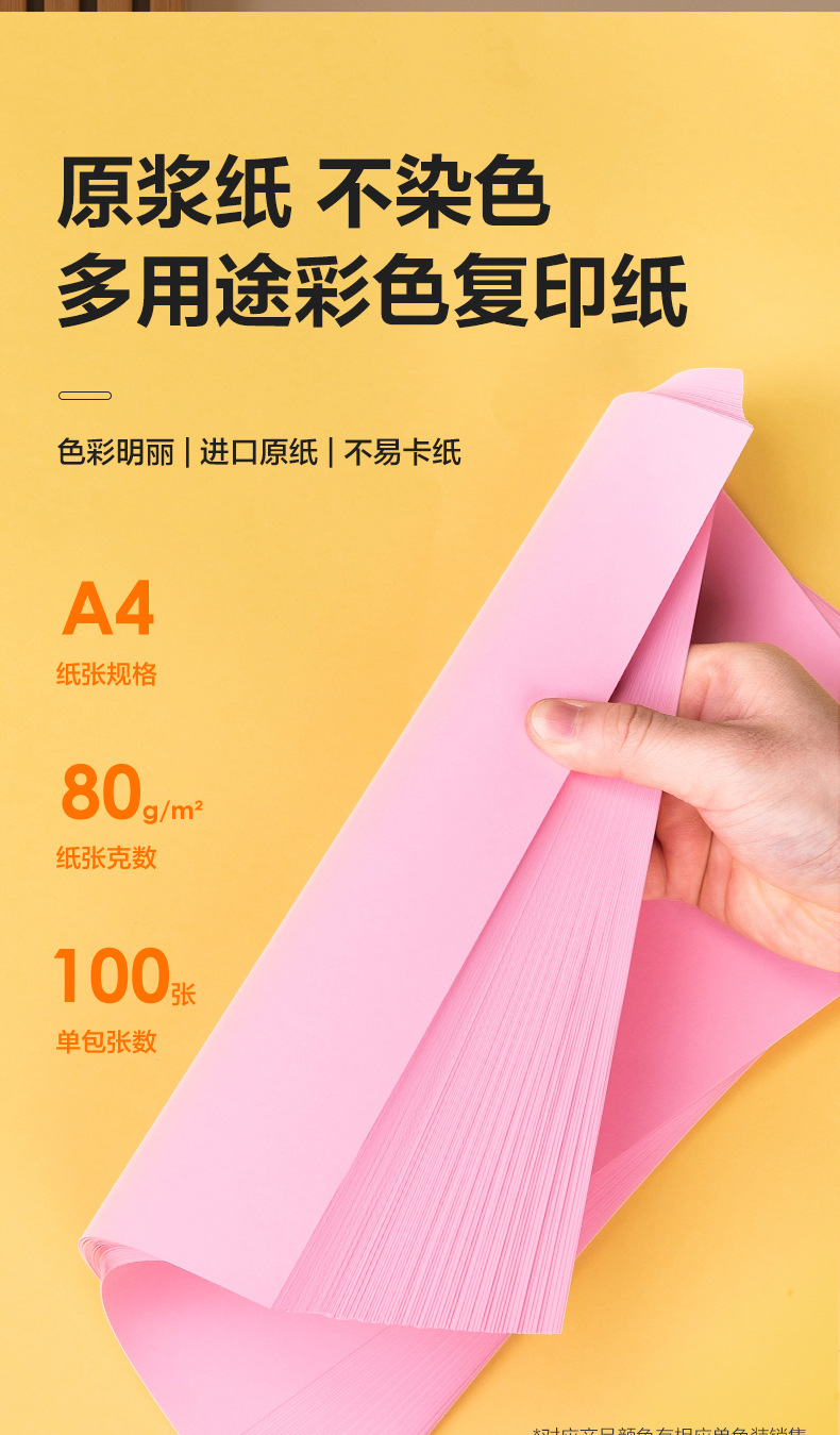 Papel de impresión en color a4 80g papel de copia de papel de oficina 100 hojas de papel de impresión en color rosa origami manual