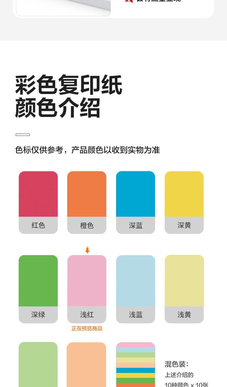 | Color | Mezcla de diez colores A4 80g 100, rojo claro A4 80g 100, amarillo oscuro A4 80g 100, rojo oscuro A4 80g 100, azul claro A4 80g 100, amarillo claro A4 80g 100, verde claro A4 80g 100, naranja oscuro A4 80g 100, rojo melocotón A4 80g 100, azul oscuro A4 80g 100, verde oscuro A4 80g 100 |