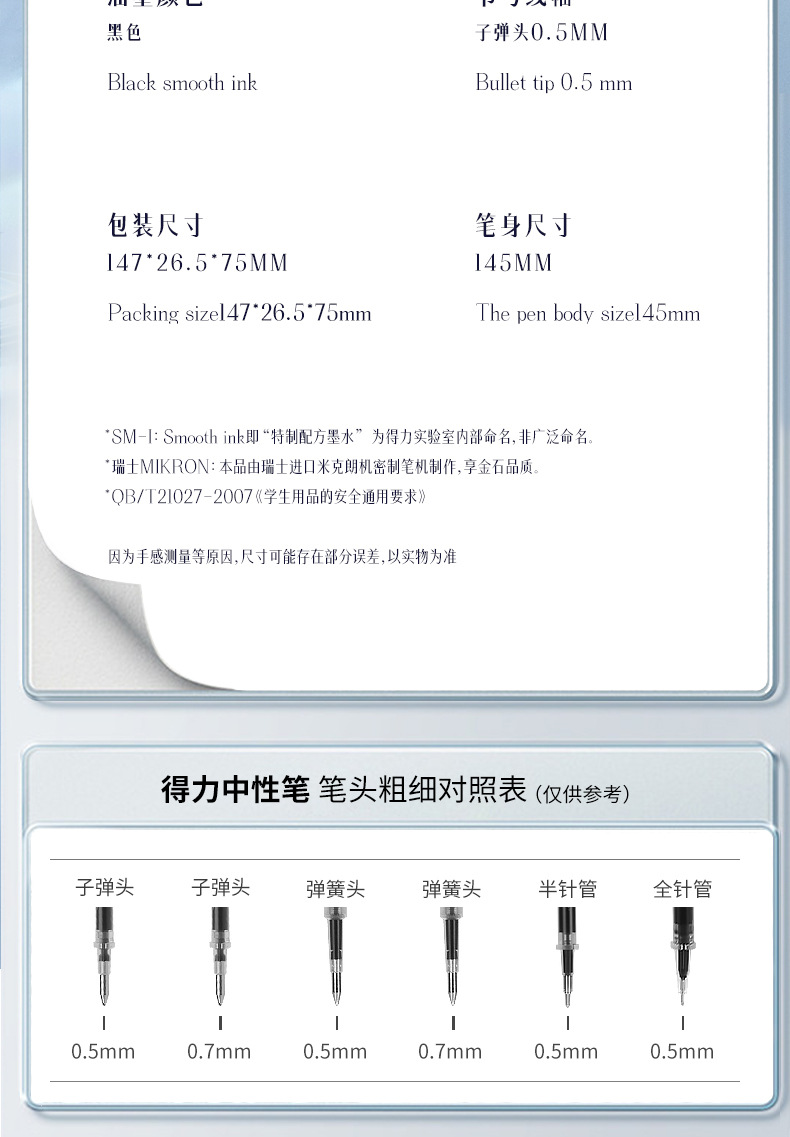 Deli / Deliky bolígrafo negro rojo bolígrafo de escritorio bolígrafo azul bolígrafo de firma de 0,5 mm bala S08