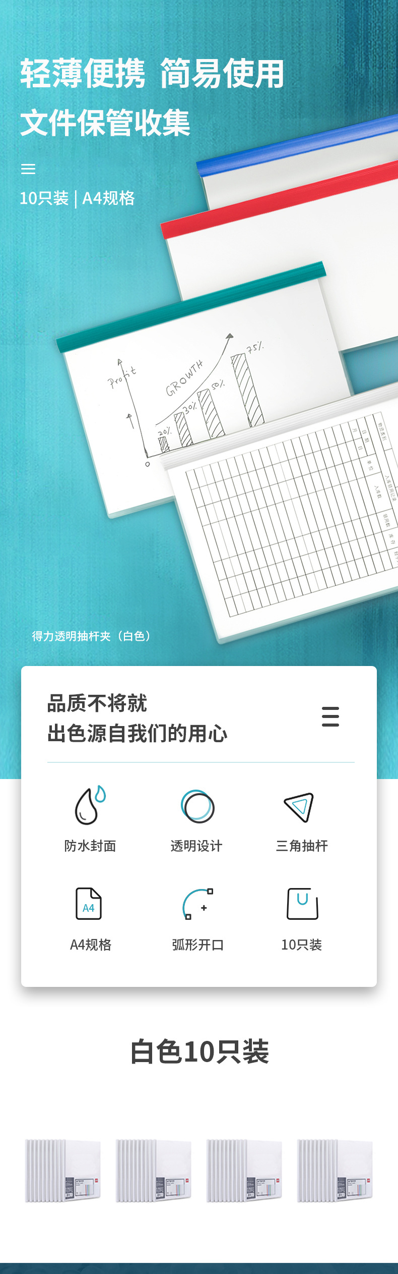 Deli a4 clip de barra de dibujo carpeta blanca clip de calendario de archivo clip de papel de prueba clip de barra de plástico 5854 blanco