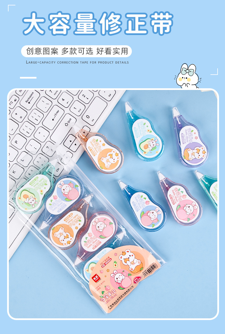 Nueva cinta de corrección para estudiantes de gran capacidad cinta de corrección Tarjeta de succión de alto aspecto cinta de corrección suave cinta de corrección papelería al por mayor